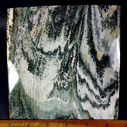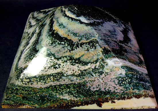 Jasper, or spotted stone, is an opaque, impure variety of Quartz that is usually red, yellow or brown in color.  Some Jaspers simultaneously exhibit several variants such as banding, flow patterns, dendrites or color variations.  This results in what appears to be scenes or images in a cut section of the Jasper.