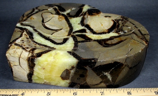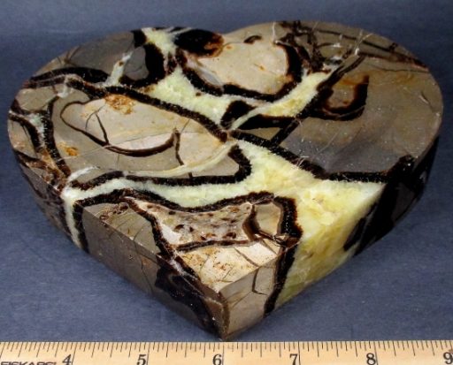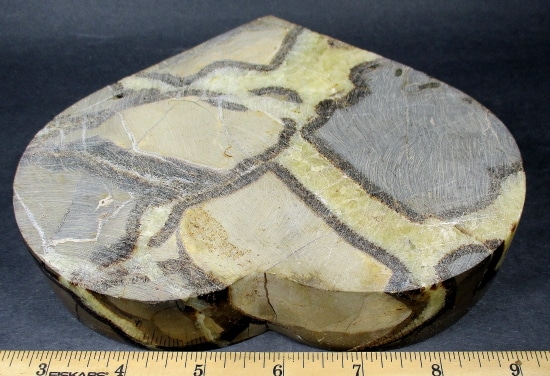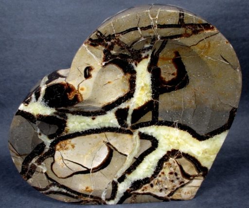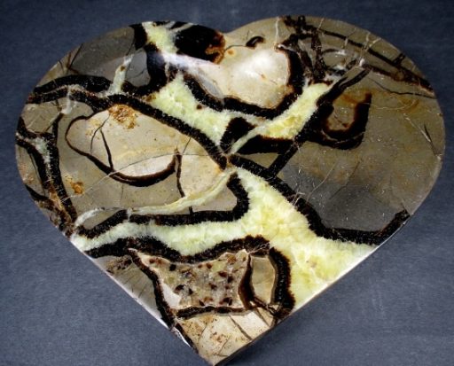 Septarians are commonly composed of a carbonate mineral such as Calcite, a microcrystalline form of Silica as in Flint or Jasper, or an Iron Oxide such as Hematite. These specimens are also known as a concretion which is a type of sedimentary rock. Septarians were formed millions of years ago by sediment forming around a fossil to create a mud ball transforming the fossil into Calcite and Aragonite.