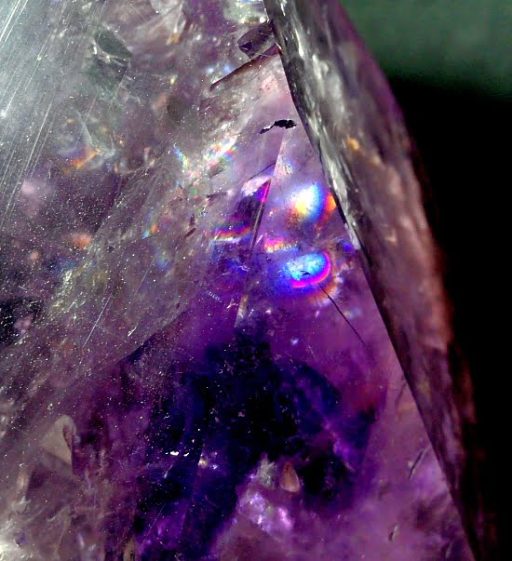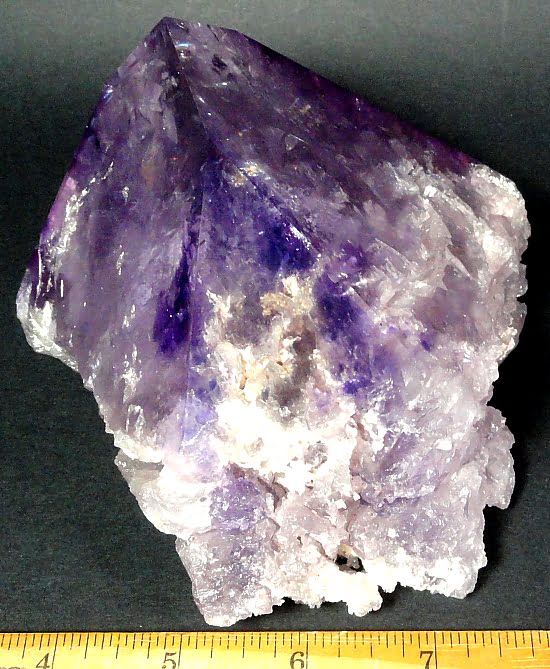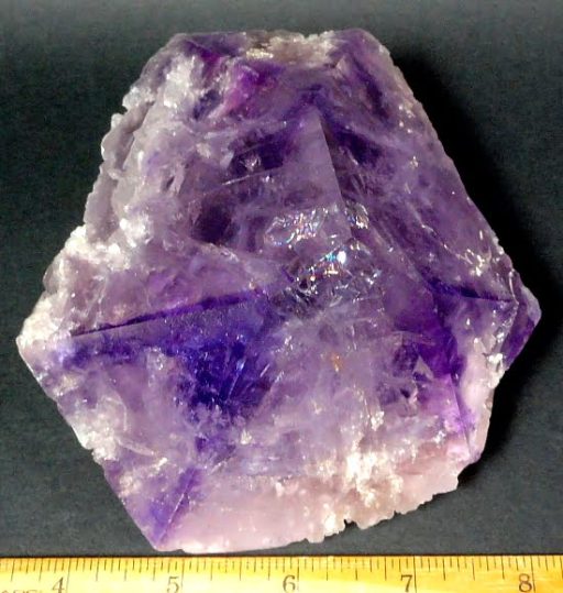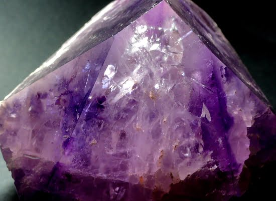 Amethyst is a purple variety of Quartz often used as an ornament. It occurs in color from a light, slightly pinkish violet to a deep grape purple. Upon exposure to heat, Amethyst generally becomes yellow, which some refer to as Citrine or “burnt” Amethyst. It is widely distributed as a mineral, but fine, clear specimens that are suitable for cutting as ornamental stones.