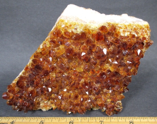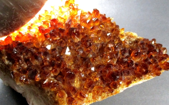Citrine is any Quartz Crystal or cluster that is yellow or orange in color. Most Citrine usually begins as Amethyst which becomes yellow due to heat treatments. True Citrine is often rarer but is hard to distinguish from the heat-treated variety. It is widely distributed as a mineral, but fine, clear specimens that are suitable for cutting as ornamental stones.