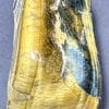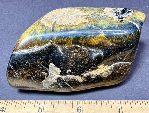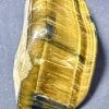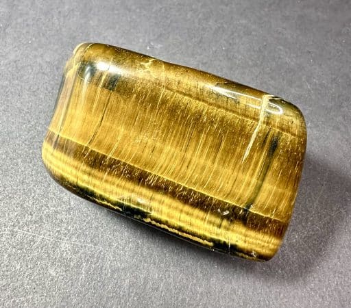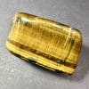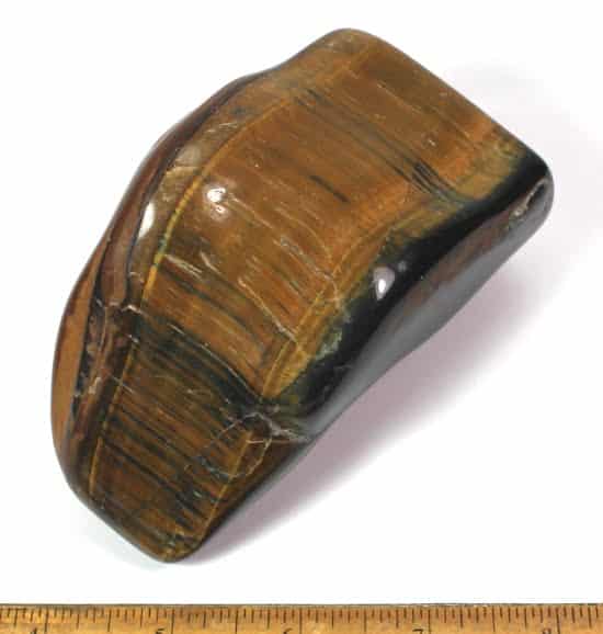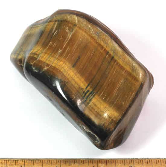Tiger-eye is a member of the quartz family, a cryptocrystalline variety. It is one of the chatoyant varieties of gemstones. Due to the fibrous structure of the gemstone, as light reflects within the thin parallel fibrous bands it exhibits a changeable silky luster or chatoyancy. It occurs naturally in colors of gold and blue.