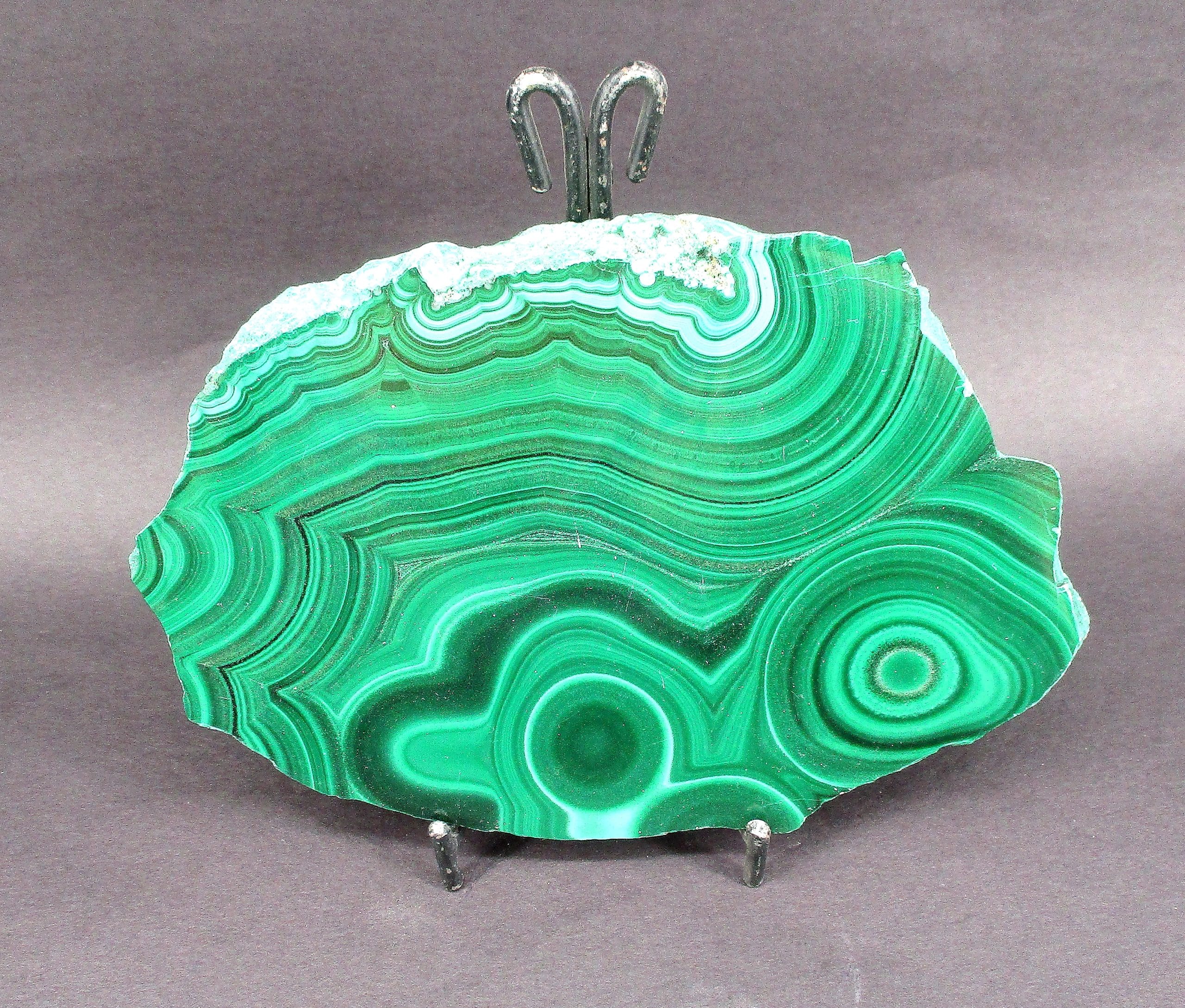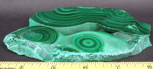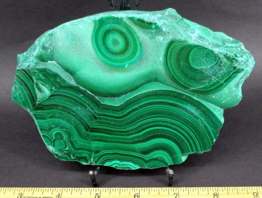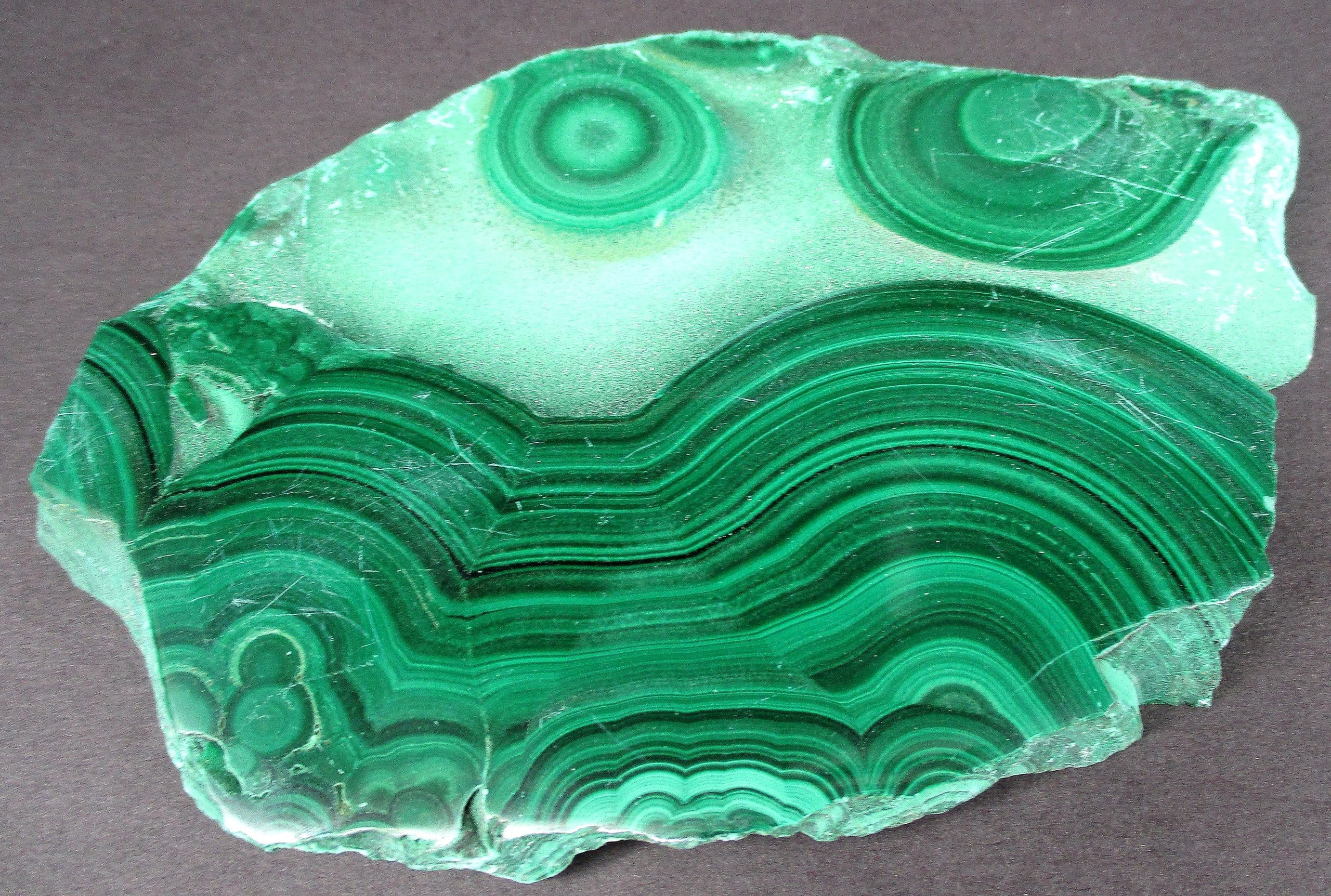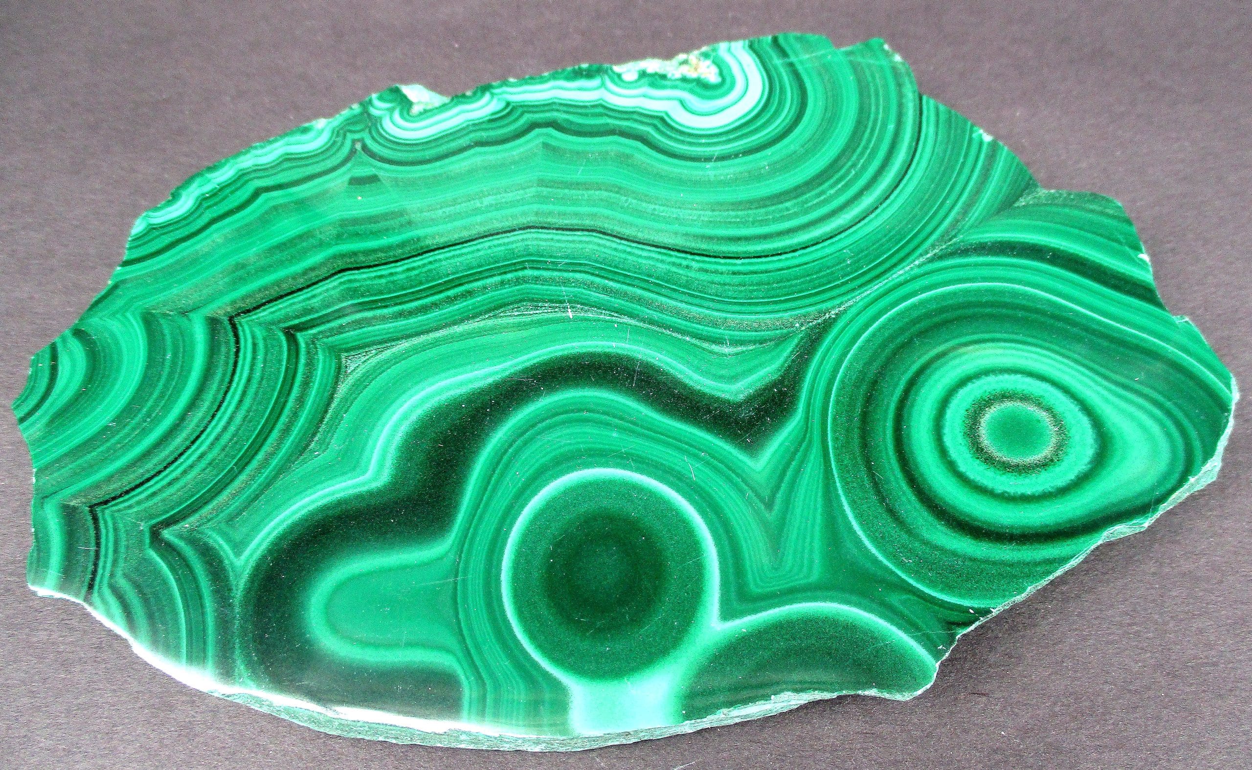 Malachite is a Copper Carbonate mineral that often forms botryoidal, fibrous or stalagmitic masses. It is often the result of the weathering of Copper Ores and is commonly found with Azurite, Goethite and Calcite. It is typically associated with Copper deposits including Limestone which is the source of the Carbonate. Malachite is found in many regions worldwide and is usually shaded green in color.