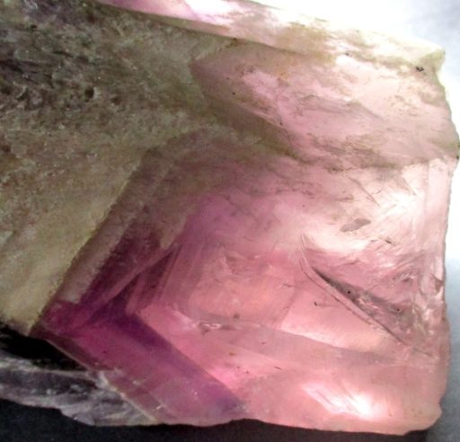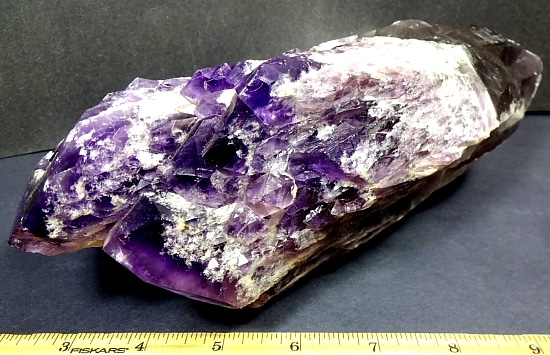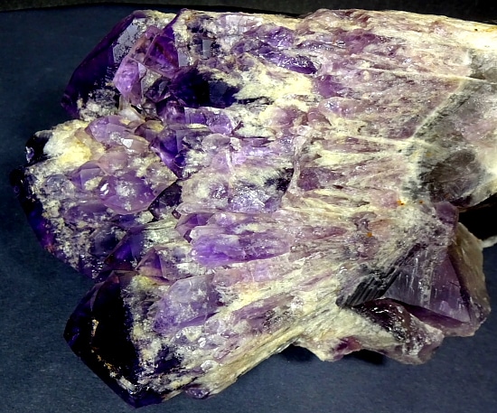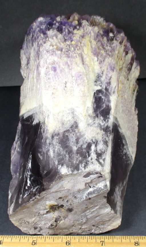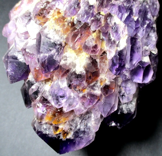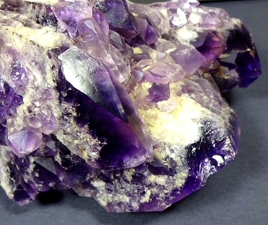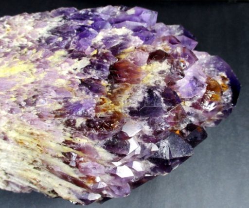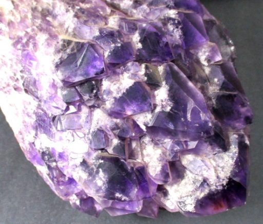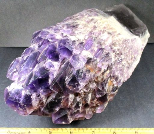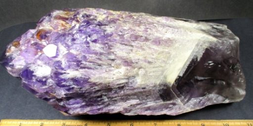 Amethyst is a purple variety of Quartz often used as an ornament. It occurs in color from a light, slightly pinkish violet to a deep grape purple. Upon exposure to heat, Amethyst generally becomes yellow, which some refer to as Citrine or “burnt” Amethyst. It is widely distributed as a mineral, but fine, clear specimens that are suitable for cutting as ornamental stones.