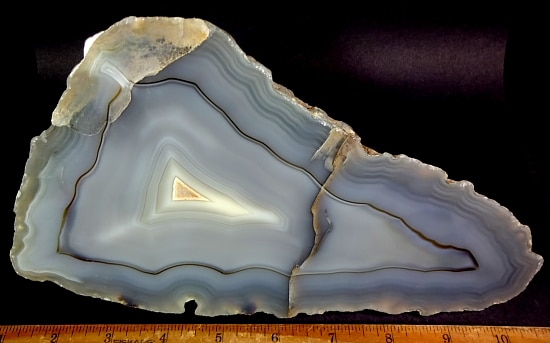 Agates mostly occur as nodules in volcanic rocks or waters containing Silica in solution which is possibly derived from the decomposition of Silicates in the lava. The Siliceous matter is deposited in regular layers resulting in the banded or striped formation. It is very unlikely that you would ever find an exact duplicate of any type of Agate, Brazilian or other.