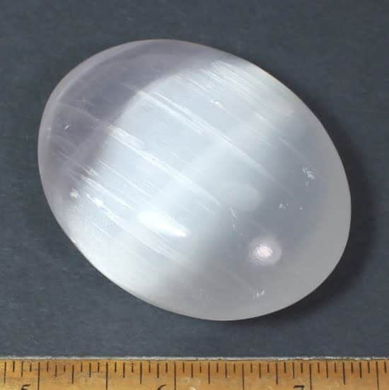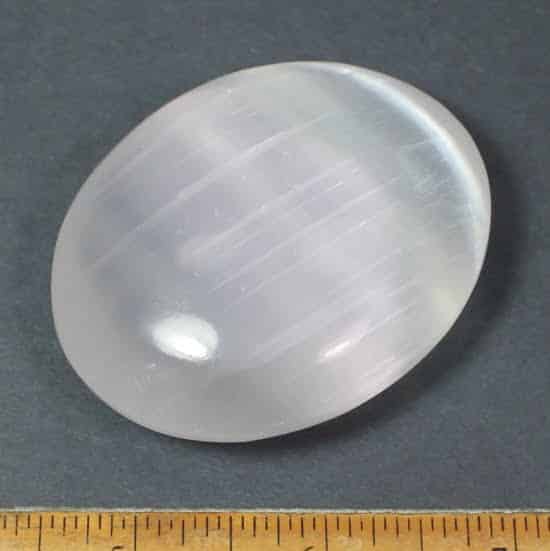 This is a beautiful tumble polished piece of Selenite.  This lovely piece measures 2 1/2″ x 2″ wide x almost 1″ thick with pretty white to nearly clear colors for an unmatched character.  Something different and unique for that special person or just to add to the your polished rock collection.