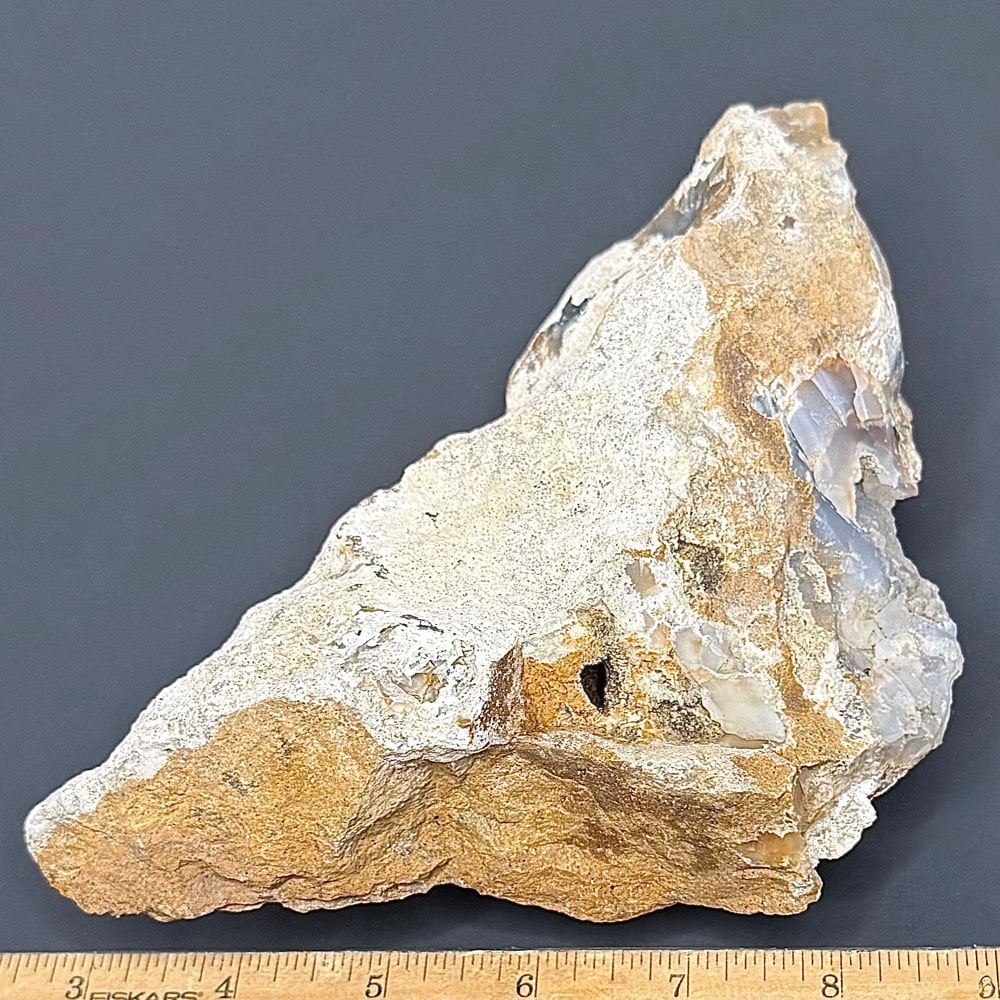 “Madison Blue Agate” is the local nickname applied to the blue chalcedony found in the cliffs above Montana’s Madison River. Most of the chalcedony has jasper inclusions or is gray/blue in color.