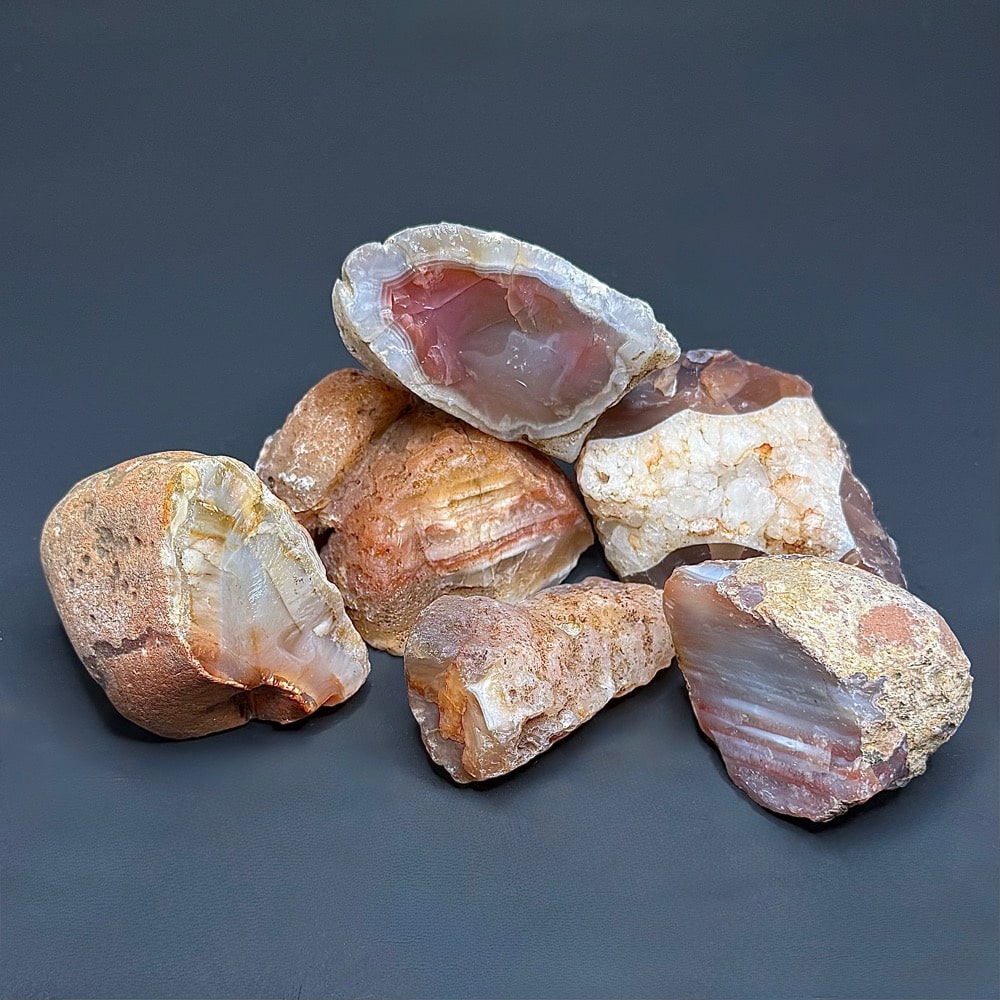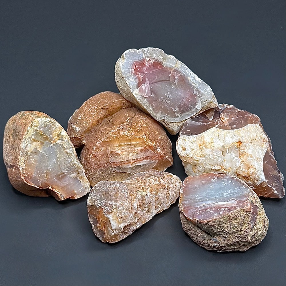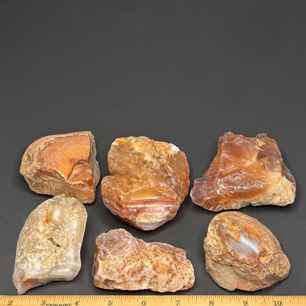 Agates mostly occur as nodules in volcanic rocks or waters containing Silica in solution which is possibly derived from the decomposition of Silicates in the lava. The Siliceous matter is deposited in regular layers resulting in the banded or striped formation. It is very unlikely that you would ever find an exact duplicate of any type of Agate, Fairburn or other.