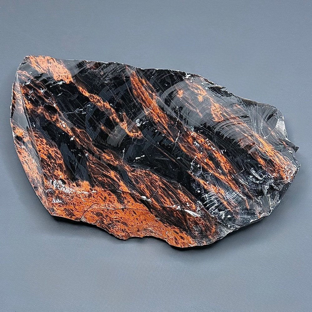 Mahogany-Obsidian is a volcanic rock that’s silica-rich and contains undulating parts of oxidized Hematite or Magnetite, which are usually colored mahogany brown or brick red within a black-colored base material. Mahogany-Obsidian can be found in places where volcanic activities have occurred.
