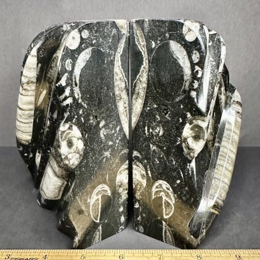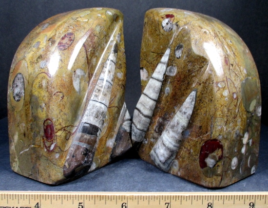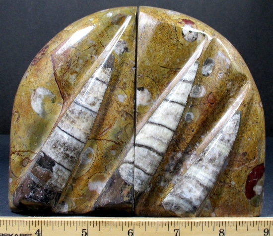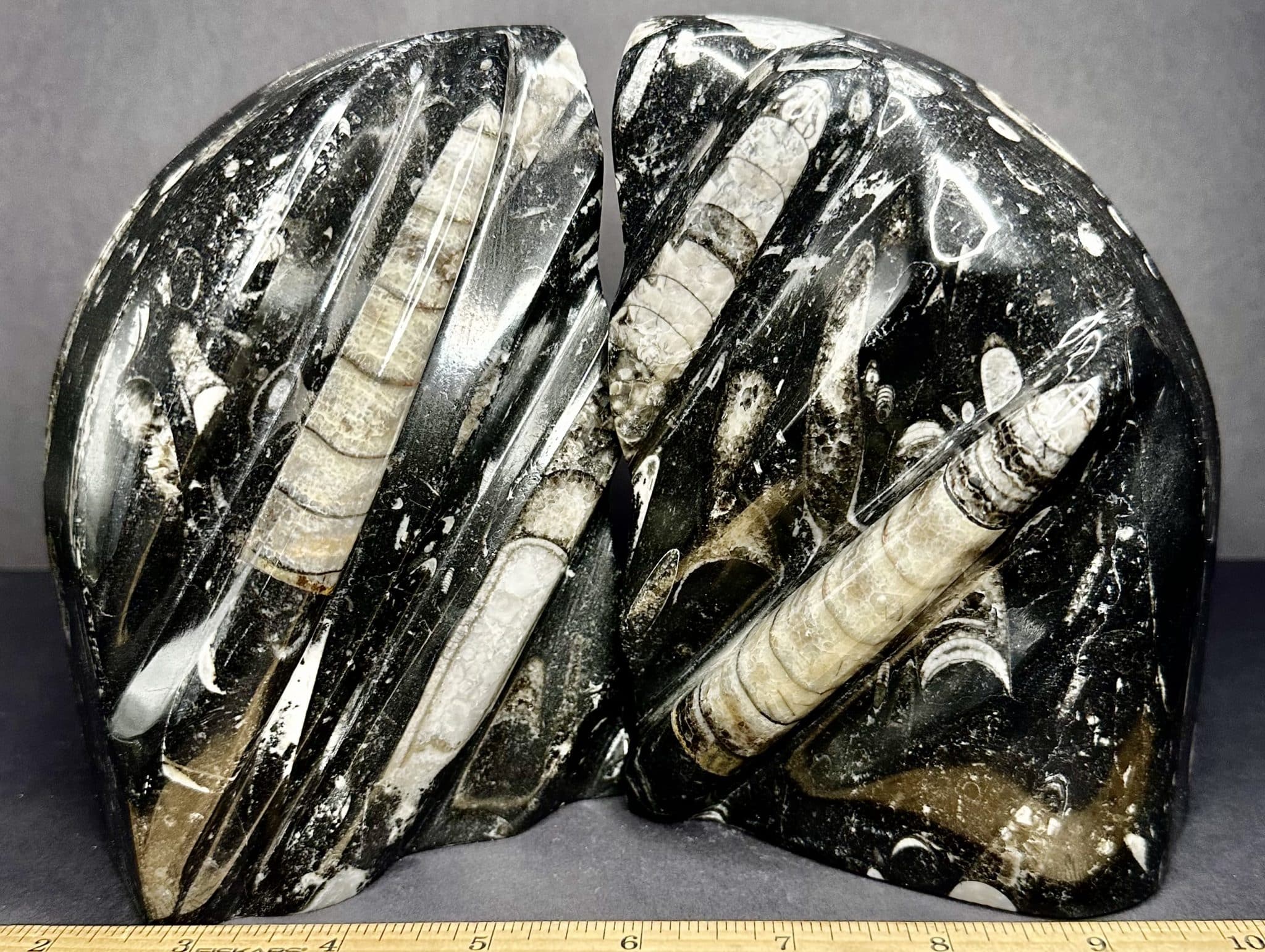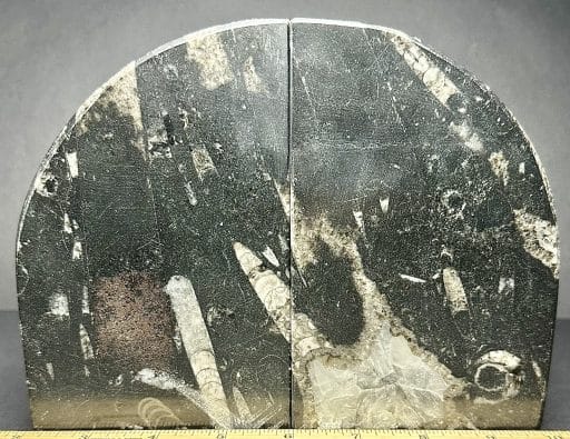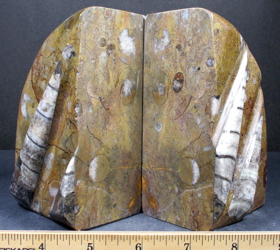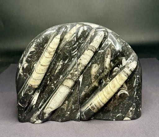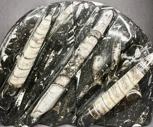 Orthoceras is a genus of extinct Nautiloid Cephalopod. These fossils are common and have a global distribution which occur in any marine rock, especially Limestone. These are slender, elongated shells with the middle of the body chamber transversely constricted and a sub-central orthochoanitic siphuncle. The surface is ornamented by a network of fine lirae or fine lines/ridges.