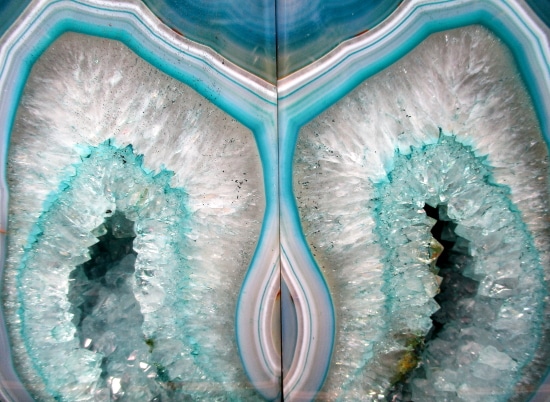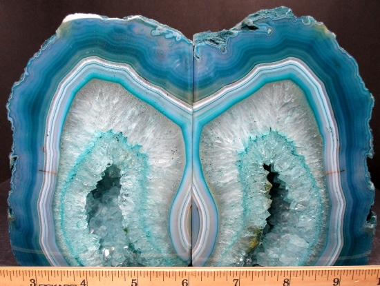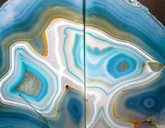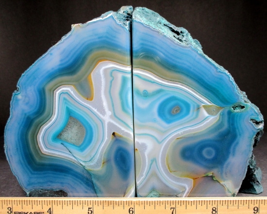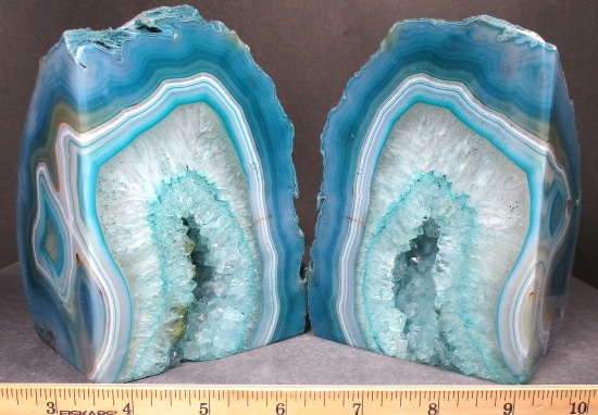 BK105: Teal Brazilian Agate Bookends – Set. Location: Brazil Selection: Polished and rough.