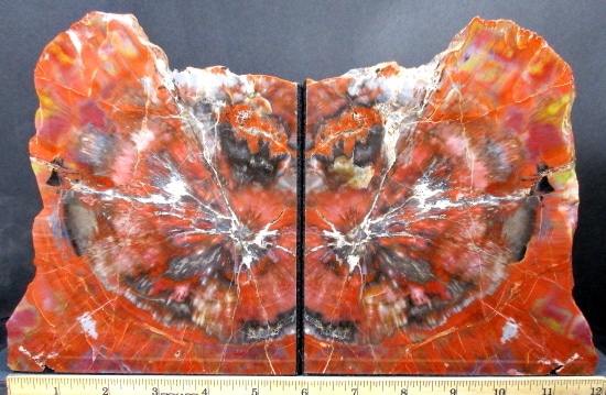 Petrified Wood is a type of a fossil as it consists of fossil wood where all the organic materials have been replaced with minerals while retaining the original structure of the wood. These minerals are most often Silicates such as Quartz. Other minerals, Manganese, Iron and Copper, in the water or mud during the petrification process gives Petrified Wood a variety of color ranges: black – Carbon; green/blue – Copper; red/brown/yellow – Iron. Petrified Wood can preserve the original structure of the wood in all its detail all the way down to the microscopic level. Structures such as tree rings and the various tissues are often observed features. Although Petrified Wood can be found worldwide, it is rather rare in larger quantities and at times can be difficult to obtain by the average collector.