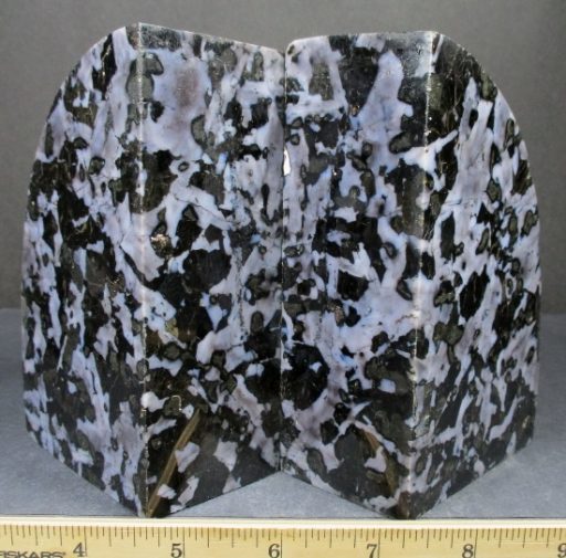 Indigo Gabbro or Mystic Merlinite is a newly mined crystal from Madagascar. It has amazing colors from light indigo purple to black. Gabbro refers to a large group of dark, coarse-grained, intrusive mafic igneous rock chemically equivalent to Basalt. The vast majority of the Earth’s surface is underlain by Gabbro within the oceanic crust, produced by Basalt magmatism at mid-ocean ridges. Gabbro often contains valuable amounts of Chromium, Nickel, Cobalt, Gold, Silver, Platinum and Copper Sulfides. The name given to Merlinite is by no means a random act. It’s source in Cornwall, England has long been associated with the legend of King Arthur and his sorcerer Merlin.