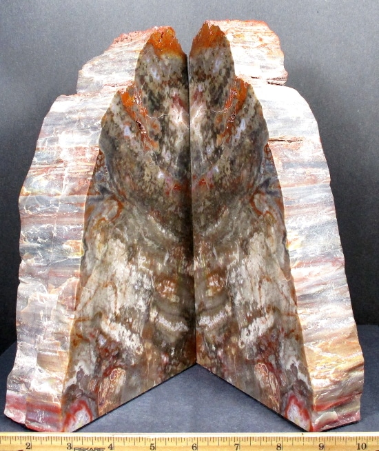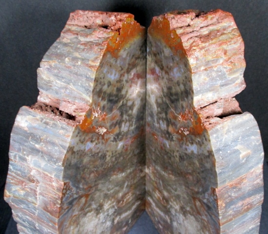 Petrified Wood is a type of a fossil as it consists of fossil wood where all the organic materials have been replaced with minerals while retaining the original structure of the wood. These minerals are most often Silicates such as Quartz. Other minerals, Manganese, Iron and Copper, in the water or mud during the petrification process gives Petrified Wood a variety of color ranges: black – Carbon; green/blue – Copper; red/brown/yellow – Iron. Petrified Wood can preserve the original structure of the wood in all its detail all the way down to the microscopic level. Structures such as tree rings and the various tissues are often observed features. Although Petrified Wood can be found worldwide, it is rather rare in larger quantities and at times can be difficult to obtain by the average collector.