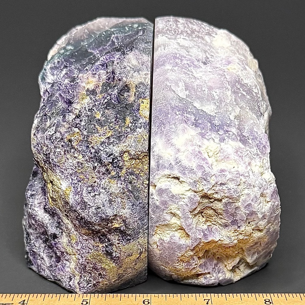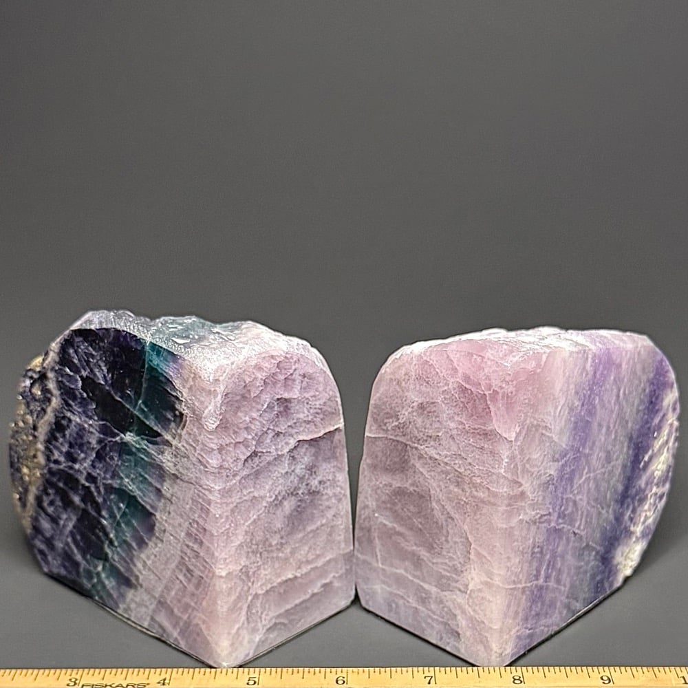 BK111: Fluorite Bookends. – Locality: China Selection: Polished and rough specimen.