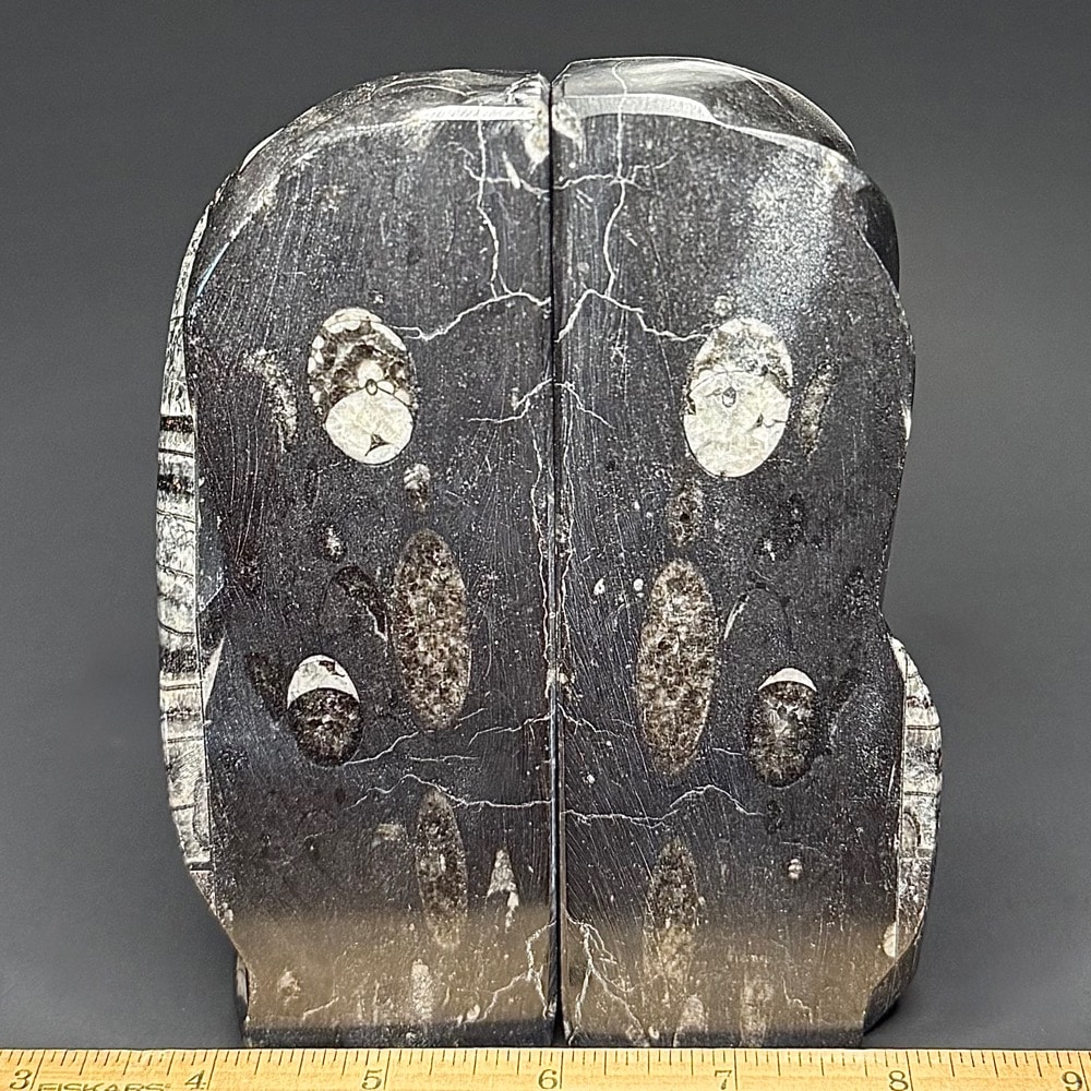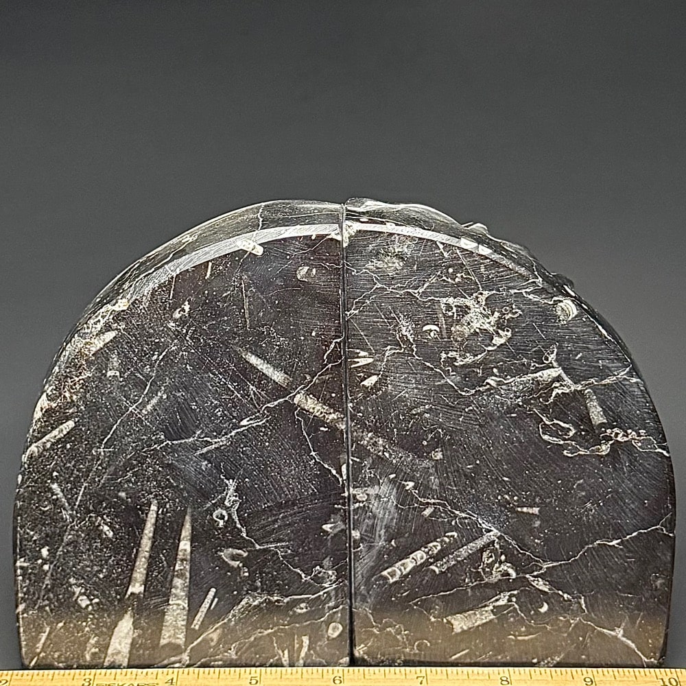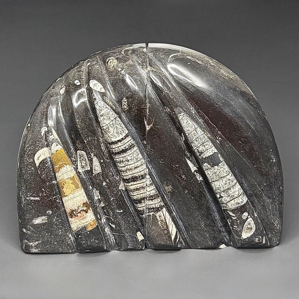 Orthoceras is a genus of extinct Nautiloid Cephalopod. These fossils are common and have a global distribution which occur in any marine rock, especially Limestone. These are slender, elongated shells with the middle of the body chamber transversely constricted and a sub-central orthochoanitic siphuncle. The surface is ornamented by a network of fine lirae or fine lines/ridges.