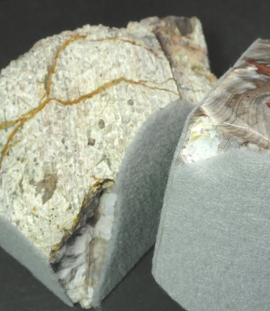 This is a very nice quality set of Dugway Geode bookends. This set has a very good color mix and nice polish on the face with grey felt in the middle and bottom.  They measure 11″ wide x 6 1/4″ tall x 4″ with amazing sparkling Geode cavities on each side. An exceptional set that would make a super gift!!