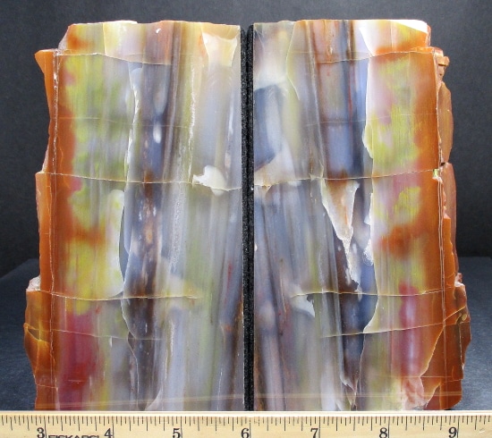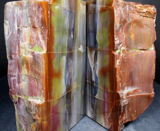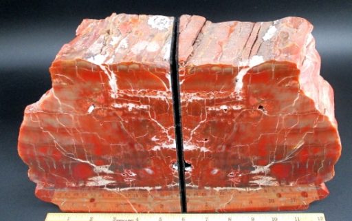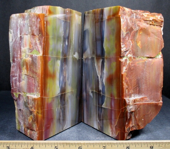 Petrified Wood is a type of a fossil as it consists of fossil wood where all the organic materials have been replaced with minerals while retaining the original structure of the wood. These minerals are most often Silicates such as Quartz. Other minerals, Manganese, Iron and Copper, in the water or mud during the petrification process gives Petrified Wood a variety of color ranges: black – Carbon; green/blue – Copper; red/brown/yellow – Iron. Petrified Wood can preserve the original structure of the wood in all its detail all the way down to the microscopic level. Structures such as tree rings and the various tissues are often observed features. Although Petrified Wood can be found worldwide, it is rather rare in larger quantities and at times can be difficult to obtain by the average collector.