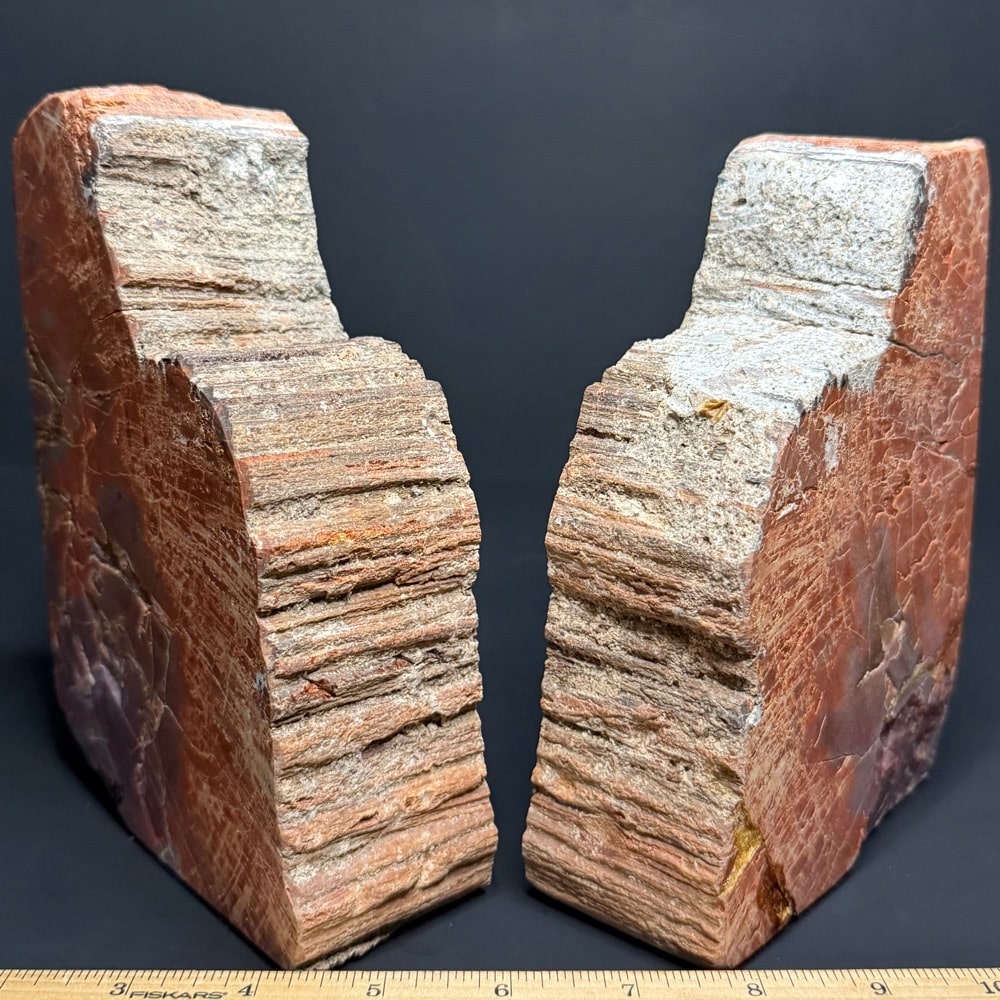 Petrified Wood is a type of a fossil as it consists of fossil wood where all the organic materials have been replaced with minerals while retaining the original structure of the wood. These minerals are most often Silicates such as Quartz. Other minerals, Manganese, Iron and Copper, in the water or mud during the petrification process gives Petrified Wood a variety of color ranges: black – Carbon; green/blue – Copper; red/brown/yellow – Iron. Petrified Wood can preserve the original structure of the wood in all its detail all the way down to the microscopic level. Structures such as tree rings and the various tissues are often observed features. Although Petrified Wood can be found worldwide, it is rather rare in larger quantities and at times can be difficult to obtain by the average collector.