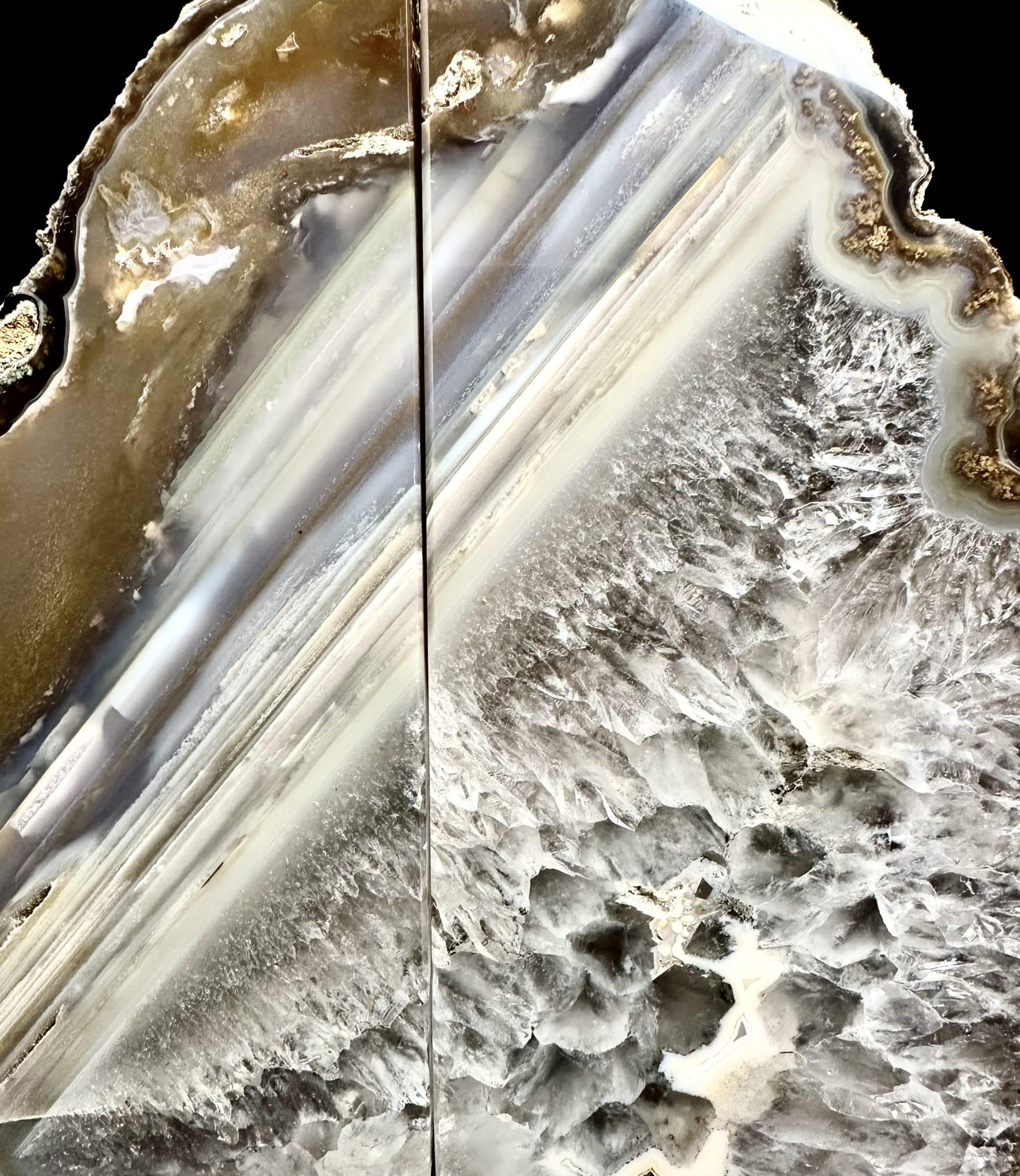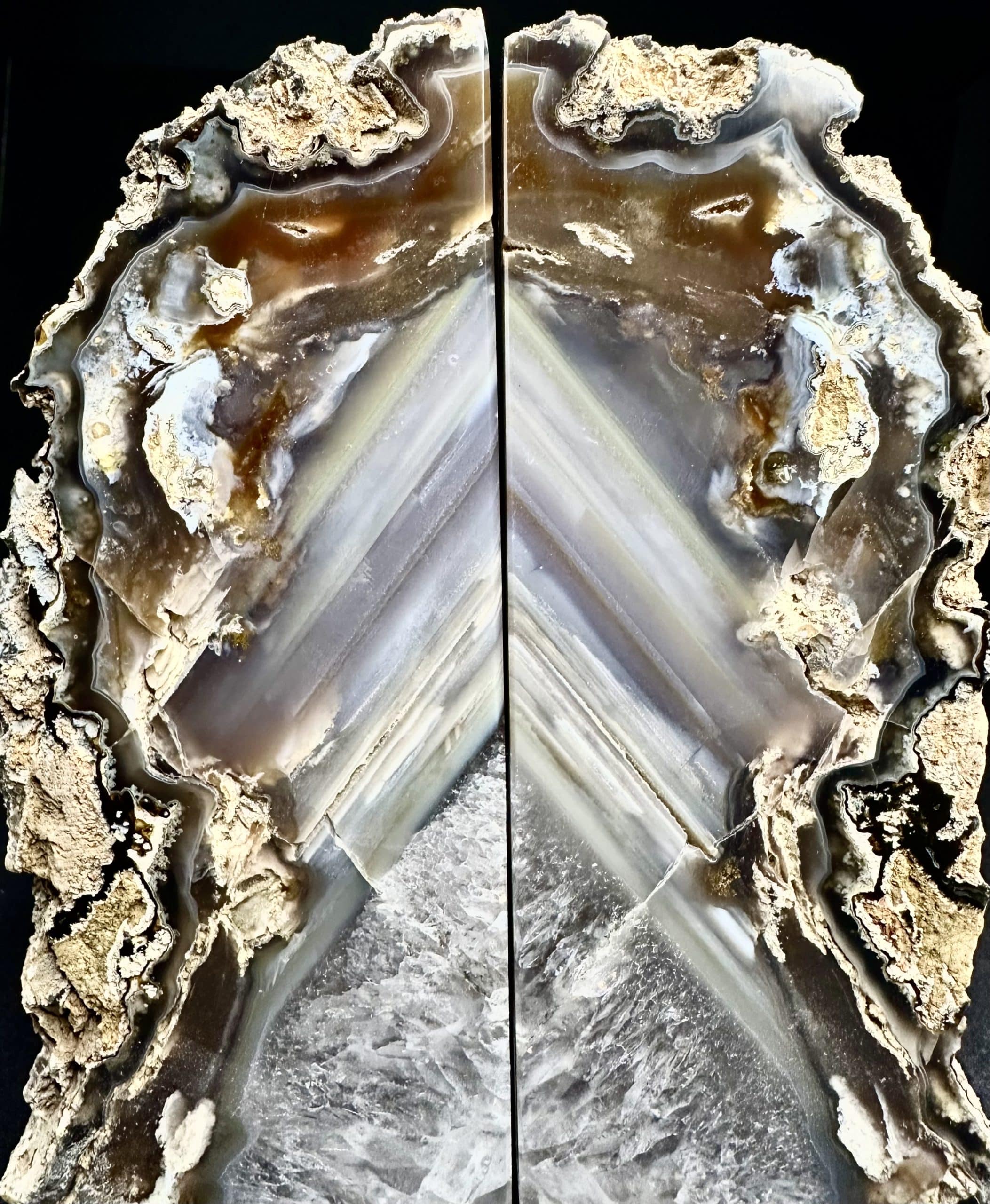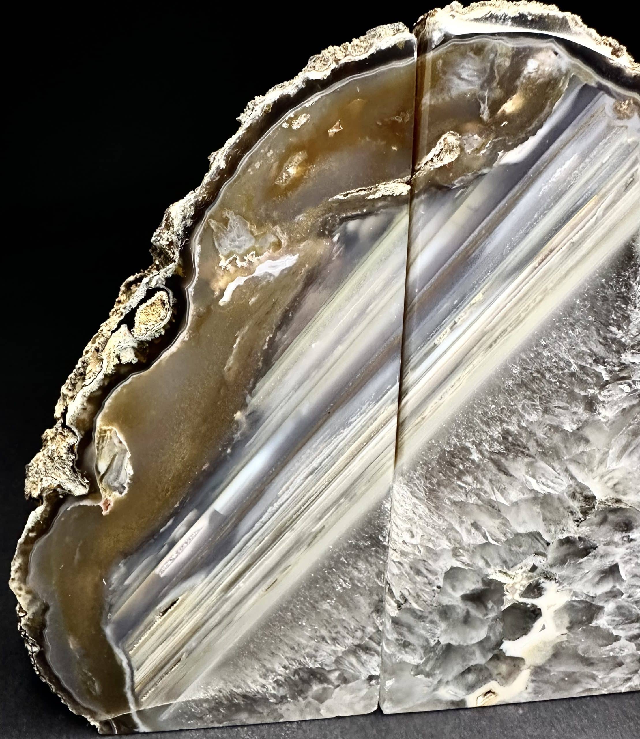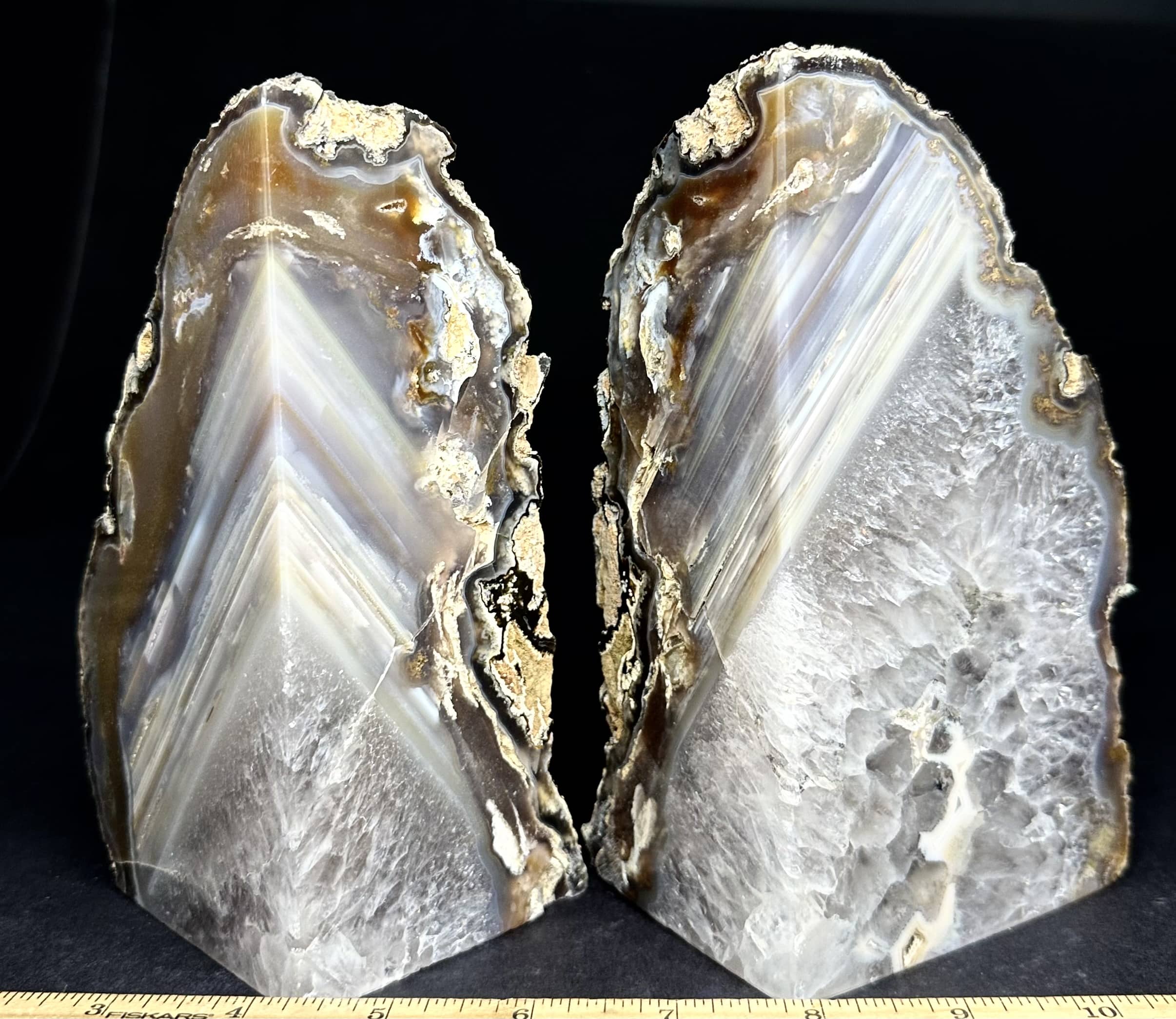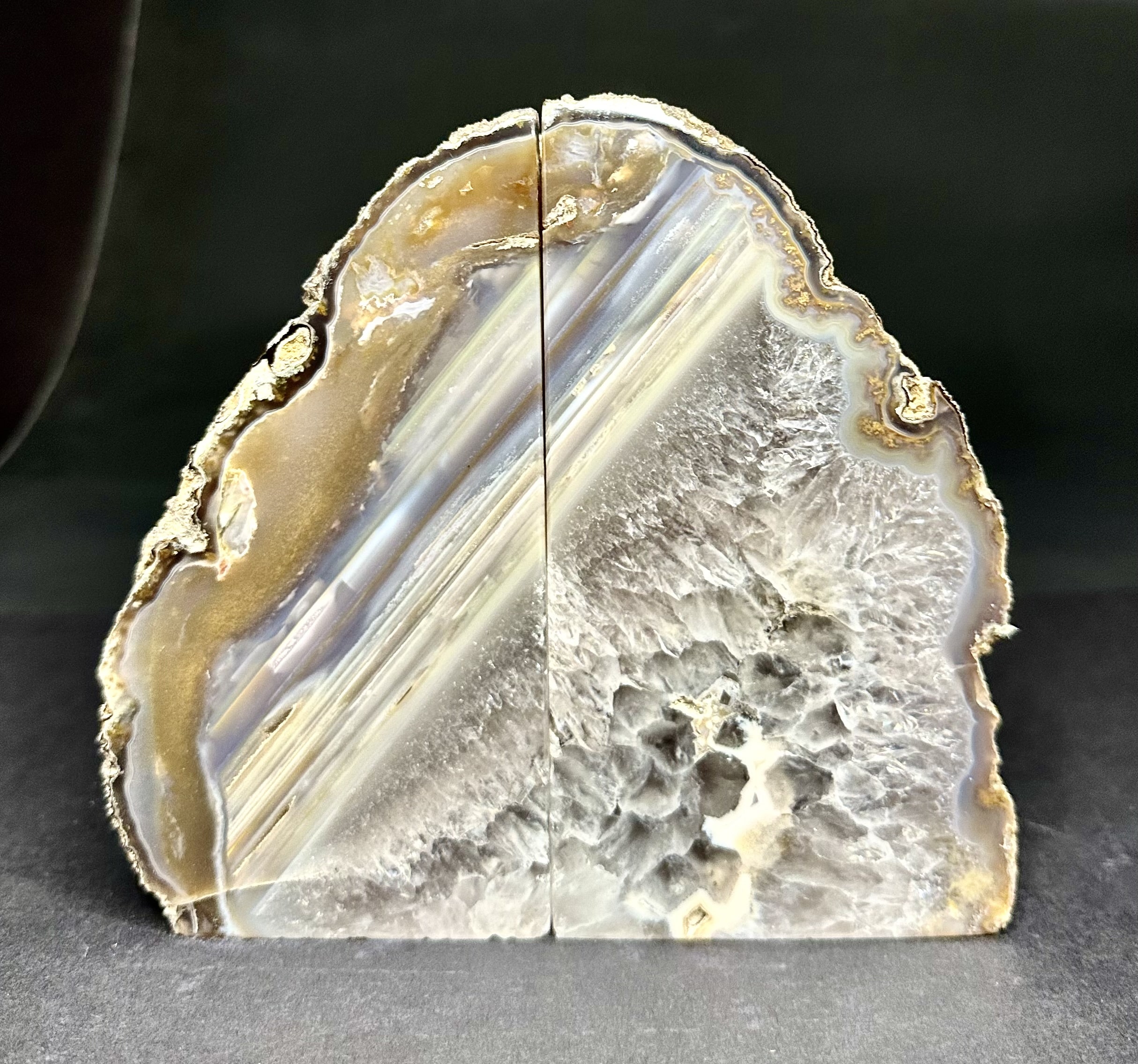 BK304: Natural Brazilian Agate Bookends. – Locality: Brazil Selection: Polished and rough specimen.
