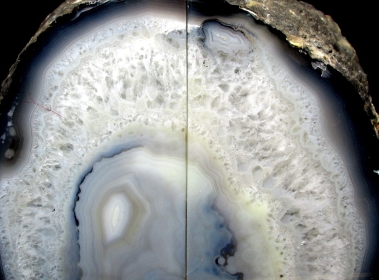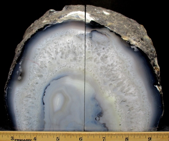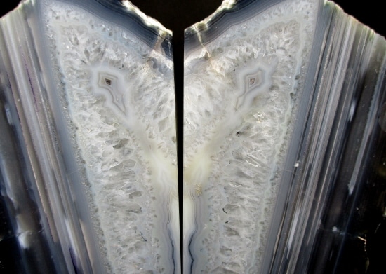 Appearance: The set is nicely polished on the front and inside faces.  It has a good mix of crystal and amazing Agate banding. It can also be turned around to display its hidden beauty and create a whole new design!