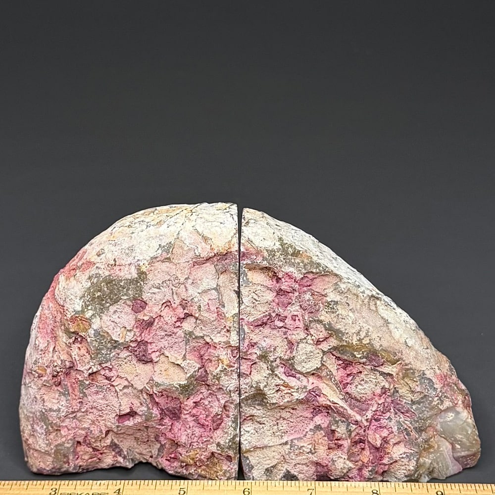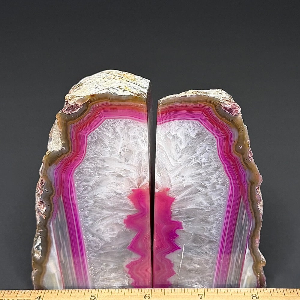 BK305: Pink (color enhanced) Brazilian Agate Bookends. – Locality: Brazil    Selection: Polished and rough specimen.