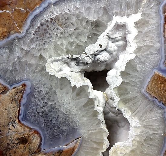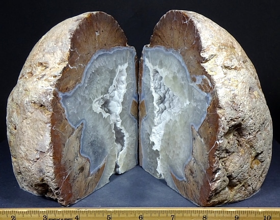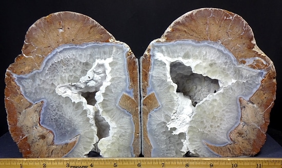 Appearance: The set is nicely polished on the front and inside faces.  It has a good mix of spectacular crystal and amazing Agate banding. It can also be turned around to display its hidden beauty and create a whole new design!