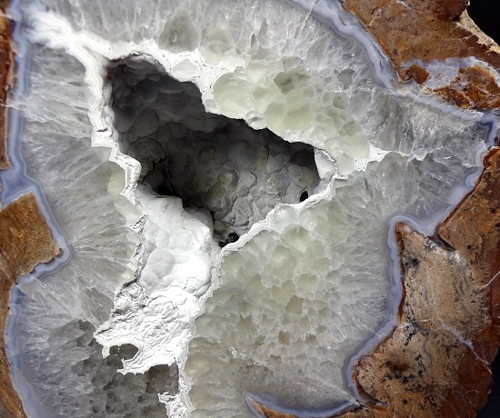 Agates mostly occur as nodules in volcanic rocks or waters containing silica in solution possibly derived from the decomposition of silicates in the lava.  The siliceous matter is deposited in regular layers resulting in the banded or striped formation.
