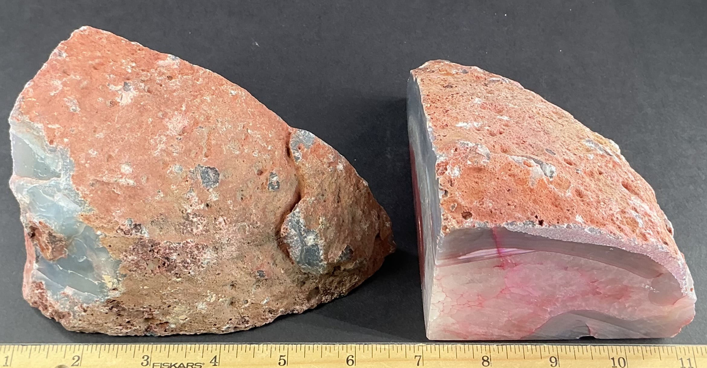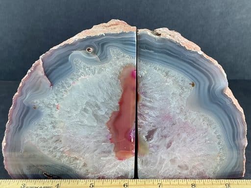 Agates mostly occur as nodules in volcanic rocks or waters containing silica in solution possibly derived from the decomposition of silicates in the lava. The siliceous matter is deposited in regular layers resulting in the banded or striped formation.