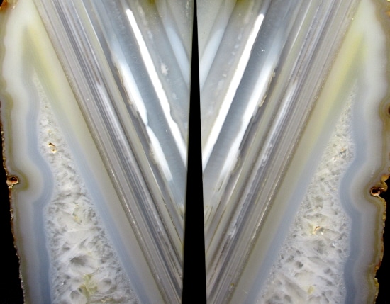 Agates mostly occur as nodules in volcanic rocks or waters containing silica in solution possibly derived from the decomposition of silicates in the lava.  The siliceous matter is deposited in regular layers resulting in the banded or striped formation.