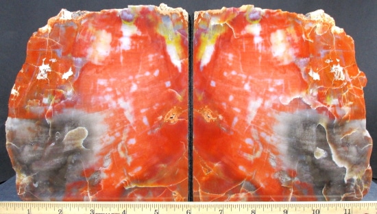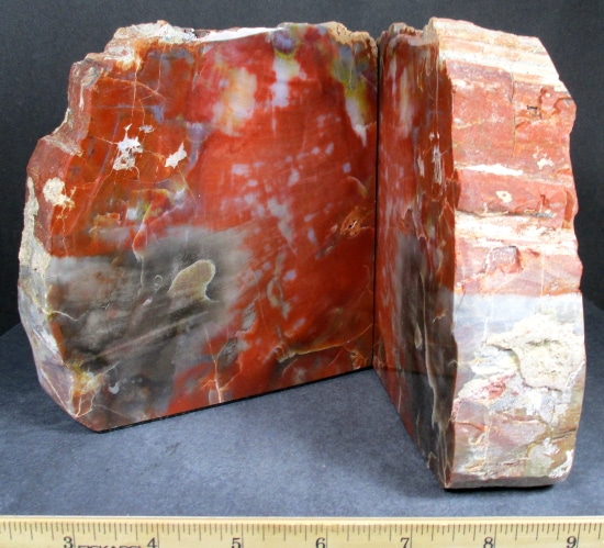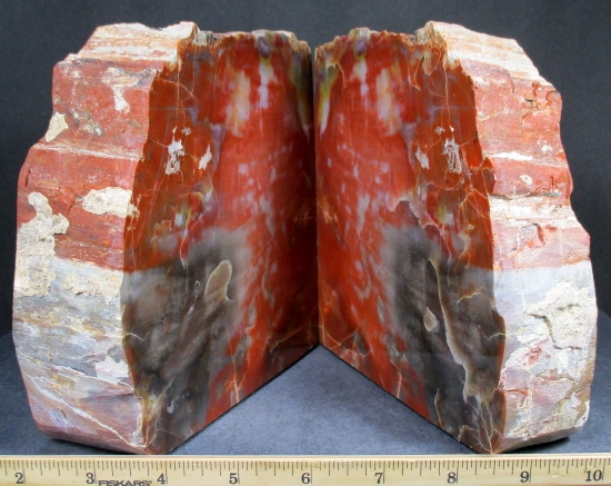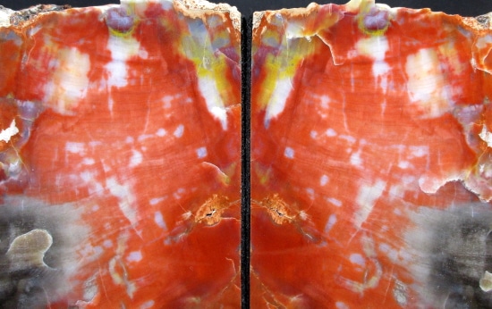 Petrified Wood is a type of a fossil as it consists of fossil wood where all the organic materials have been replaced with minerals while retaining the original structure of the wood. These minerals are most often Silicates such as Quartz. Other minerals, Manganese, Iron and Copper, in the water or mud during the petrification process gives Petrified Wood a variety of color ranges: black – Carbon; green/blue – Copper; red/brown/yellow – Iron. Petrified Wood can preserve the original structure of the wood in all its detail all the way down to the microscopic level. Structures such as tree rings and the various tissues are often observed features. Although Petrified Wood can be found worldwide, it is rather rare in larger quantities and at times can be difficult to obtain by the average collector.
