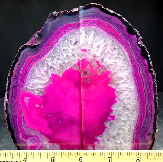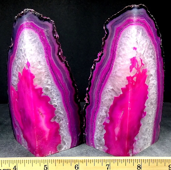 Agates mostly occur as nodules in volcanic rocks or waters containing silica in solution possibly derived from the decomposition of silicates in the lava.  The siliceous matter is deposited in regular layers resulting in the banded or striped formation.