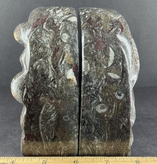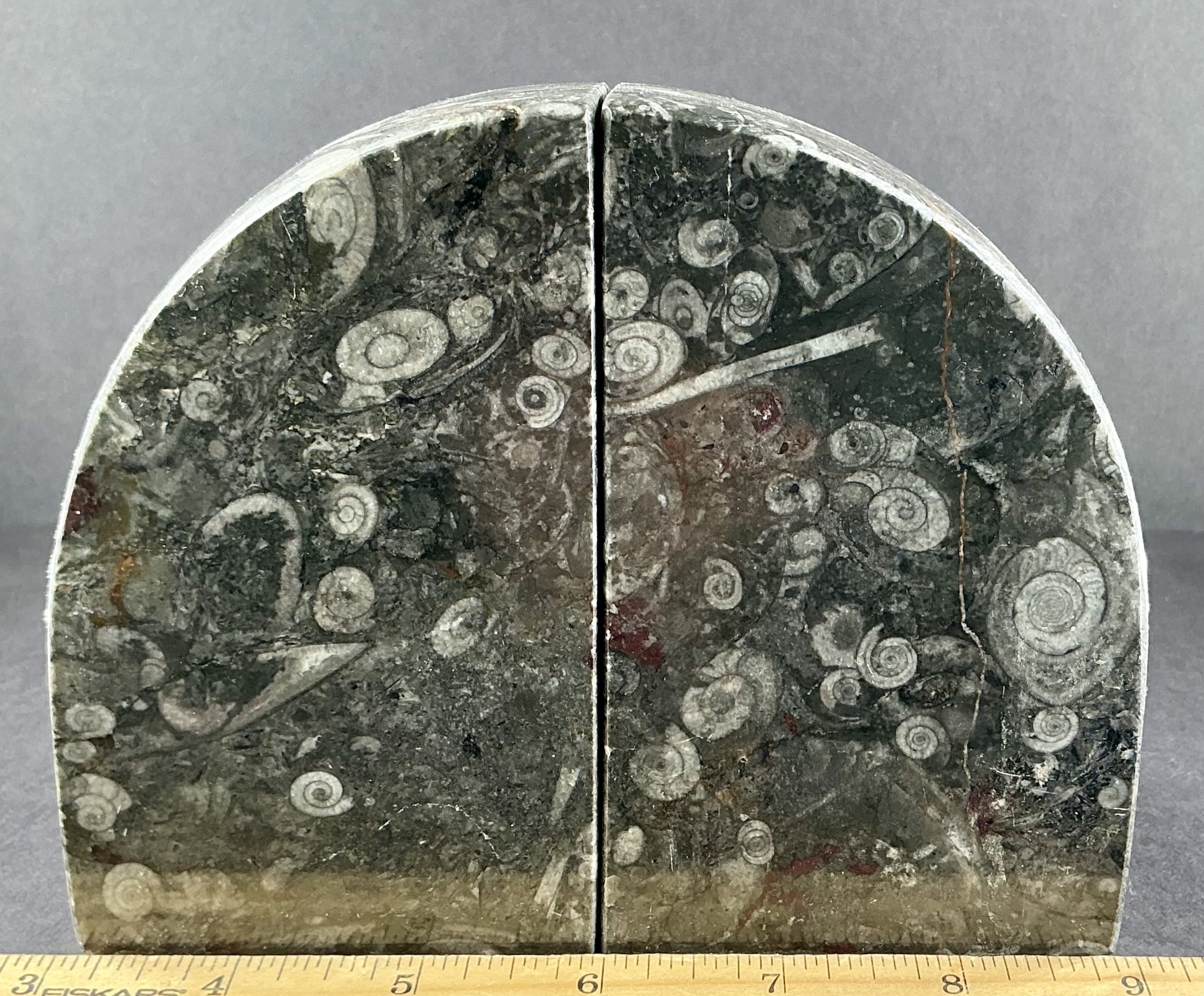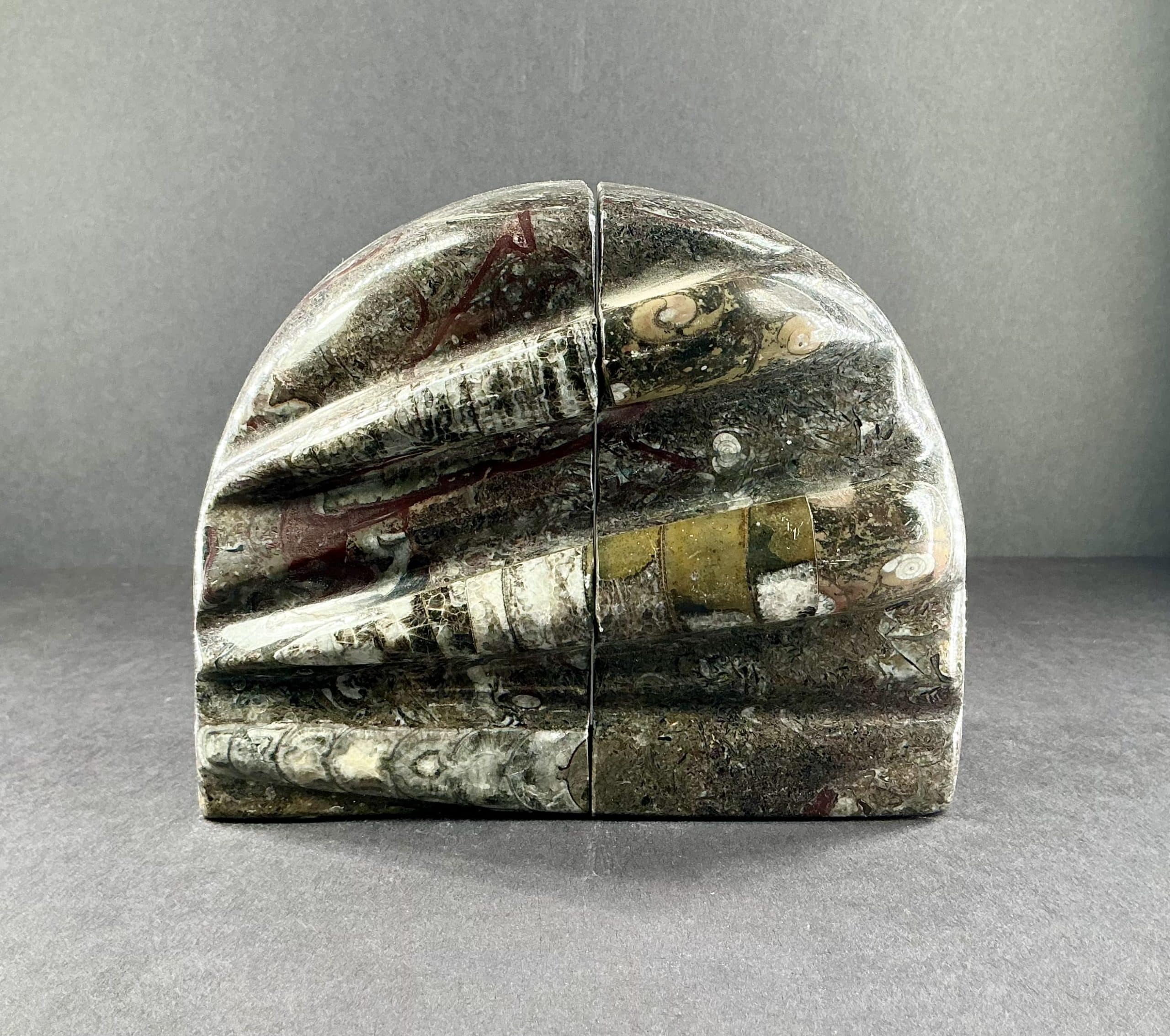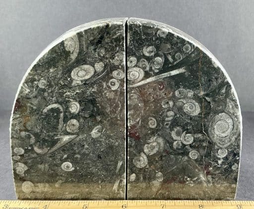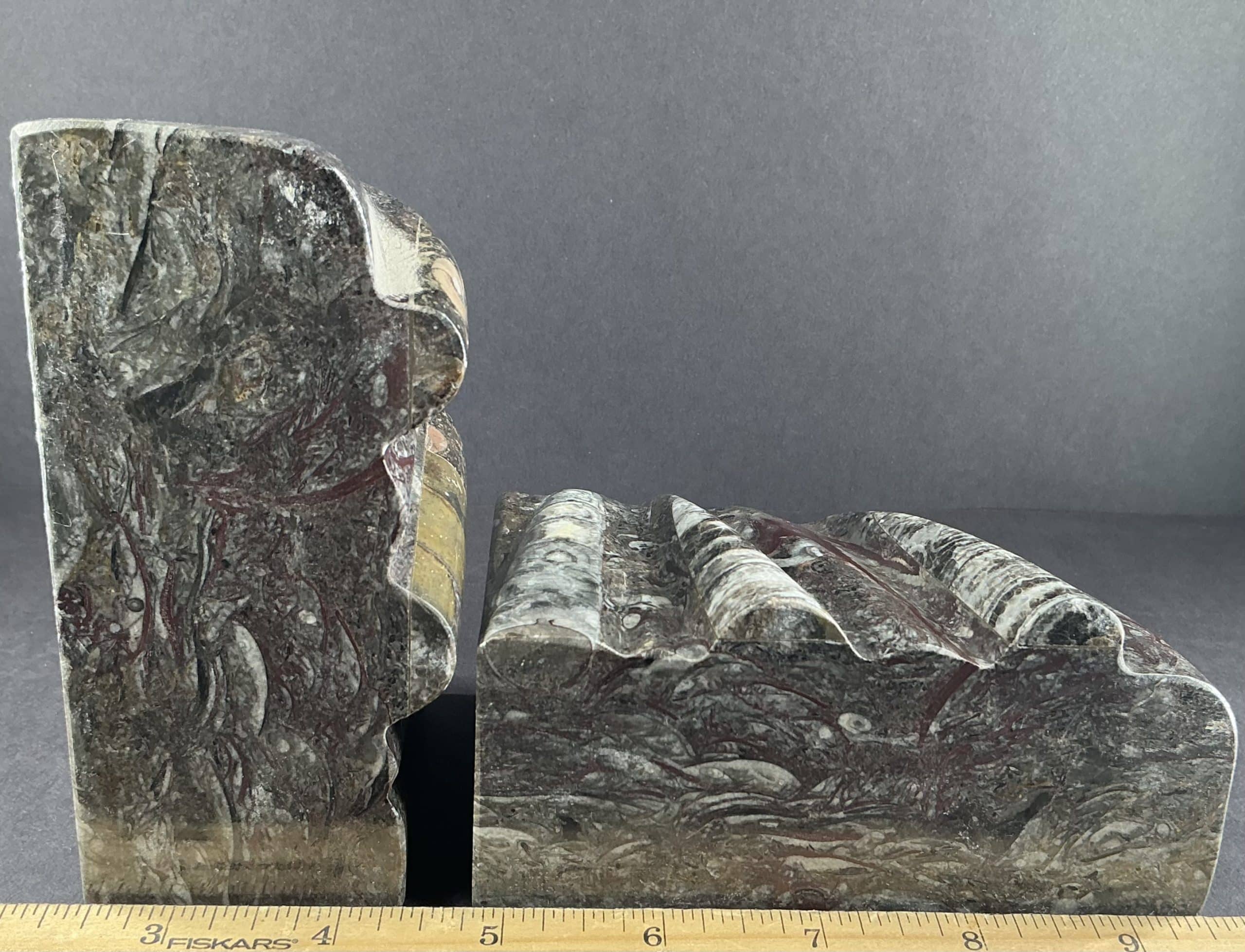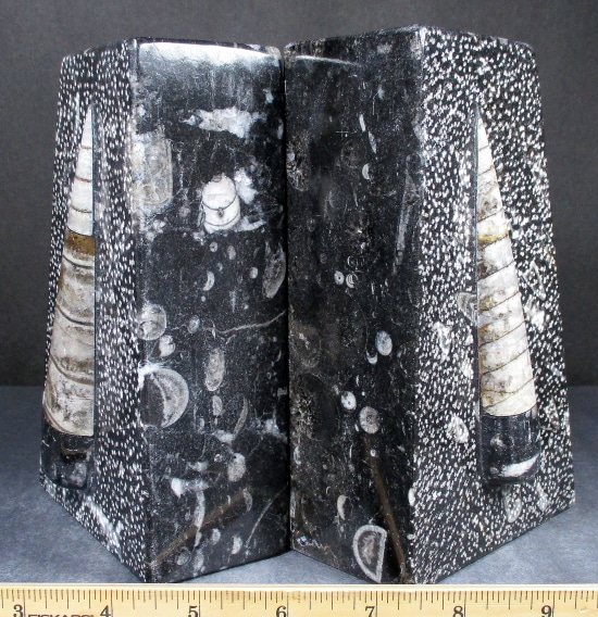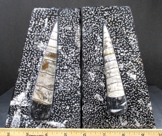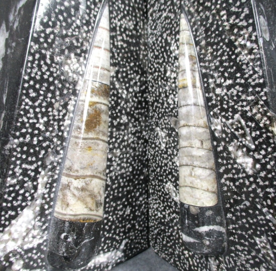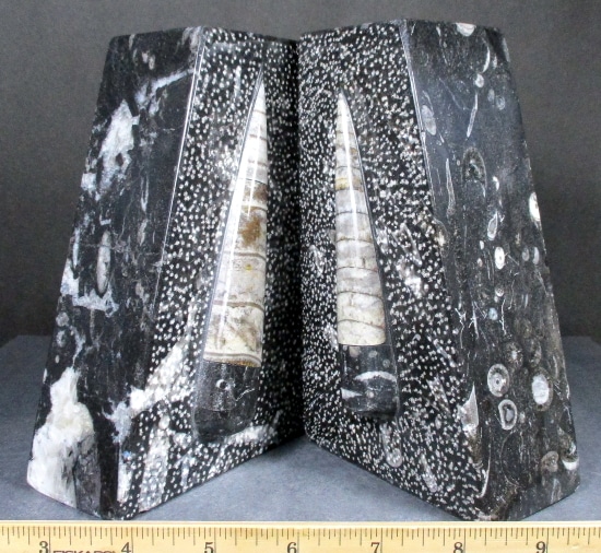 Orthoceras is a genus of extinct Nautiloid Cephalopod. These fossils are common and have a global distribution which occur in any marine rock, especially Limestone. These are slender, elongated shells with the middle of the body chamber transversely constricted and a sub-central orthochoanitic siphuncle. The surface is ornamented by a network of fine lirae or fine lines/ridges.