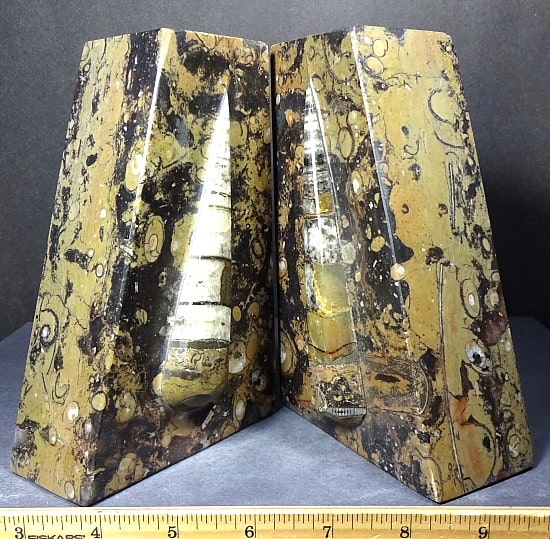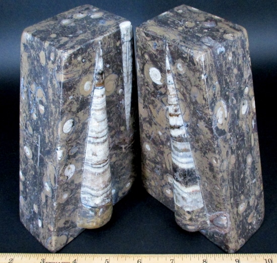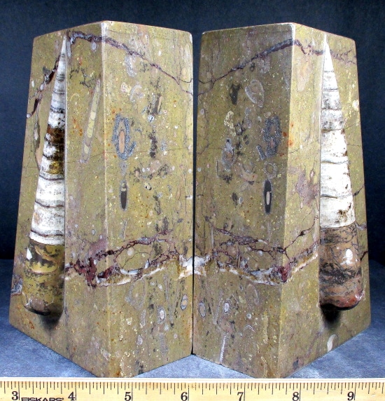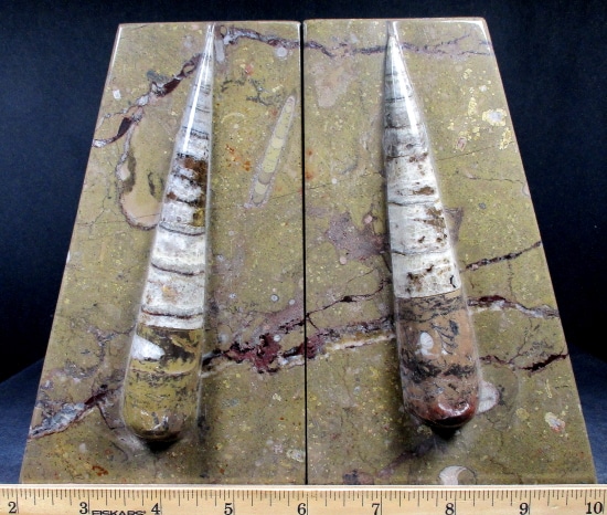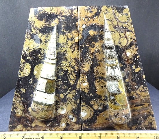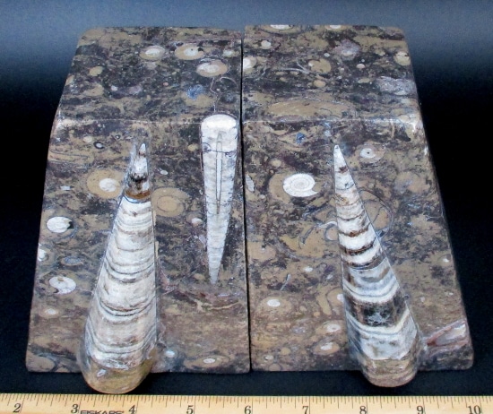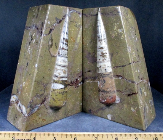 Orthoceras is a genus of extinct Nautiloid Cephalopod. These fossils are common and have a global distribution which occur in any marine rock, especially Limestone. These are slender, elongated shells with the middle of the body chamber transversely constricted and a sub-central orthochoanitic siphuncle. The surface is ornamented by a network of fine lirae or fine lines/ridges.