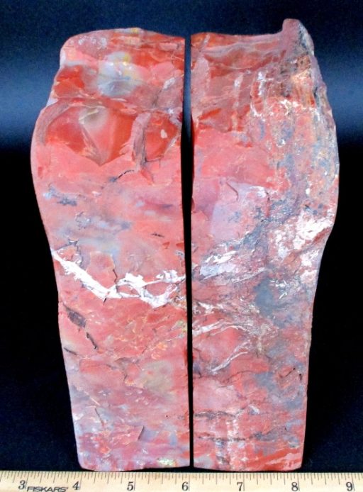 Petrified Wood is a type of a fossil as it consists of fossil wood where all the organic materials have been replaced with minerals while retaining the original structure of the wood. These minerals are most often Silicates such as Quartz. Other minerals, Manganese, Iron and Copper, in the water or mud during the petrification process gives Petrified Wood a variety of color ranges: black – Carbon; green/blue – Copper; red/brown/yellow – Iron. Petrified Wood can preserve the original structure of the wood in all its detail all the way down to the microscopic level. Structures such as tree rings and the various tissues are often observed features. Although Petrified Wood can be found worldwide, it is rather rare in larger quantities and at times can be difficult to obtain by the average collector.