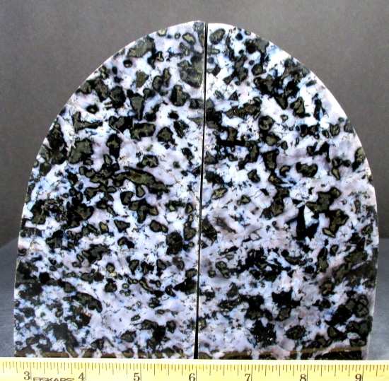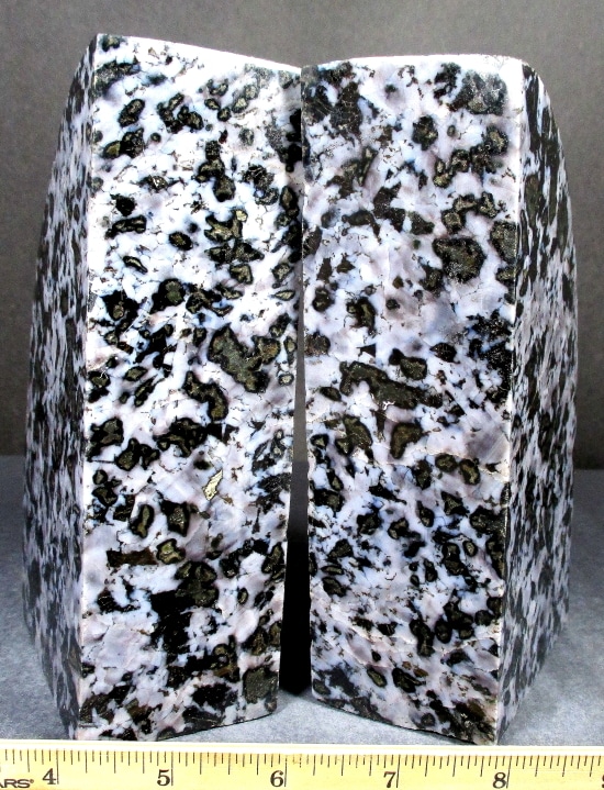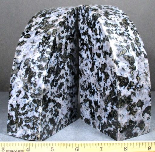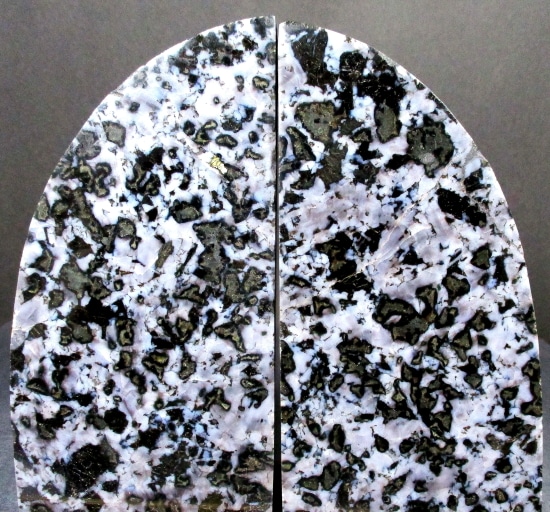Here’s something we haven’t seen before, a fabulous set of Mystic Merlinite bookends from Madagascar. The bookends measure 6 1/2″ wide x 6 1/8″ tall x 1 7/8″ with high polish on both sides. They have great color with wonderful accents in a mystical design! Grab this set quick!