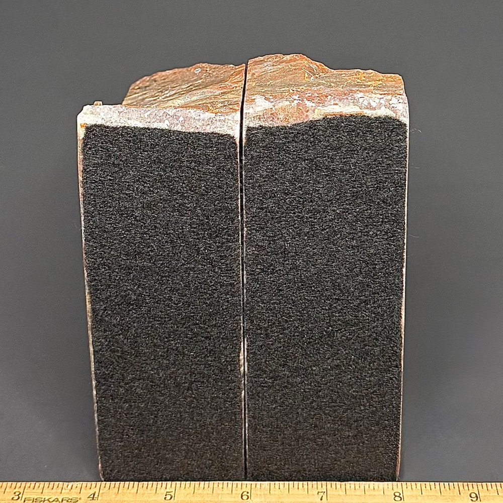 Appearance: High polished front with rough bark sides and smooth unpolished back. This set displays an array of shapes and colors within the surface. The visuals provide the quintessential look that Arizona petrified wood is known for.