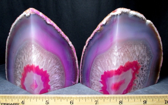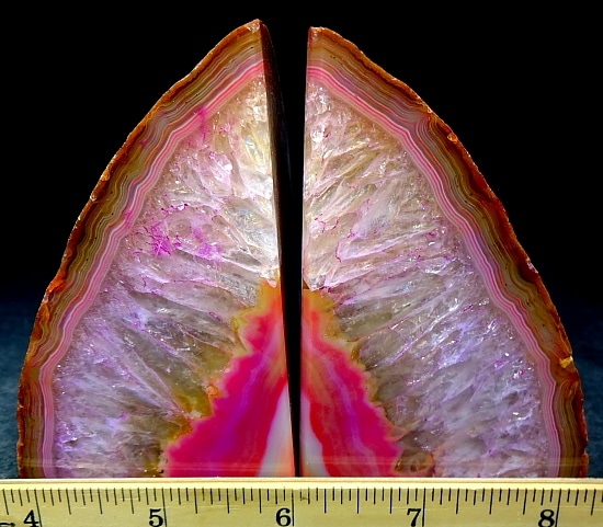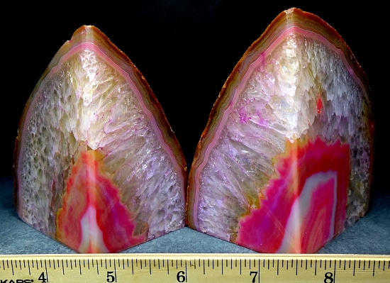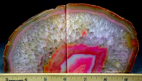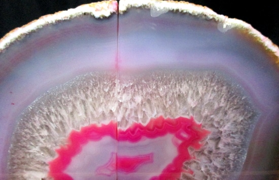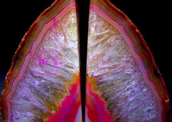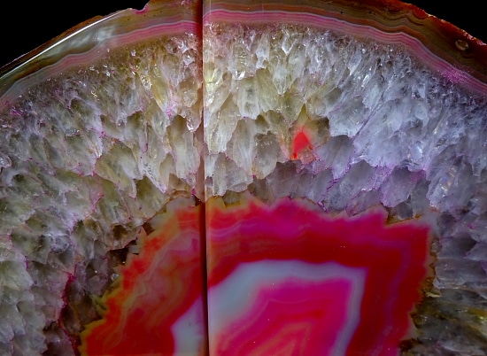 Agates mostly occur as nodules in volcanic rocks or waters containing silica in solution possibly derived from the decomposition of silicates in the lava. The siliceous matter is deposited in regular layers resulting in the banded or striped formation.
