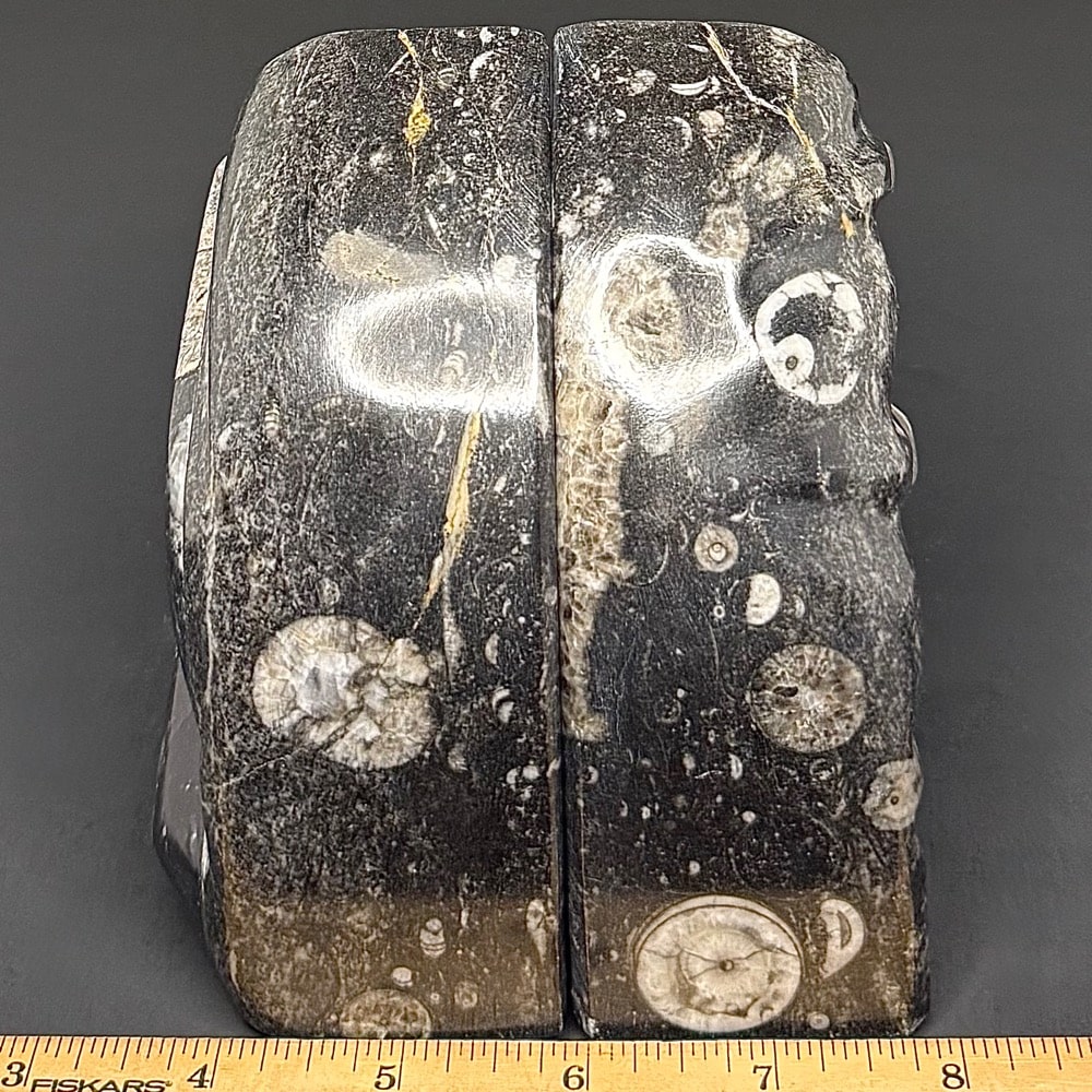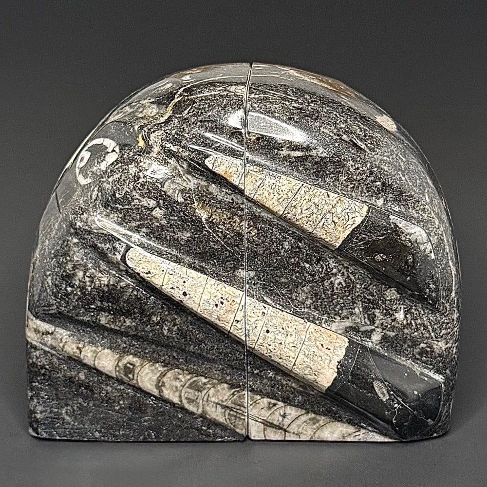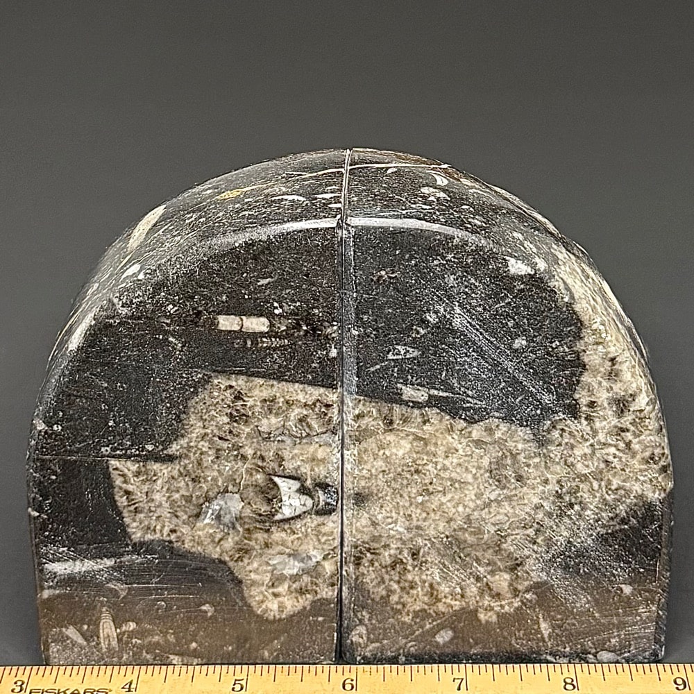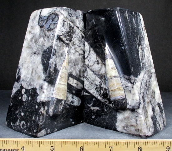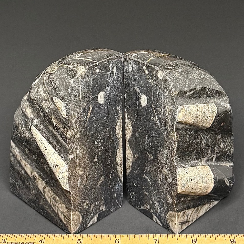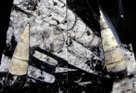 Orthoceras is a genus of extinct Nautiloid Cephalopod. These fossils are common and have a global distribution which occur in any marine rock, especially Limestone. These are slender, elongated shells with the middle of the body chamber transversely constricted and a sub-central orthochoanitic siphuncle. The surface is ornamented by a network of fine lirae or fine lines/ridges.