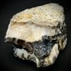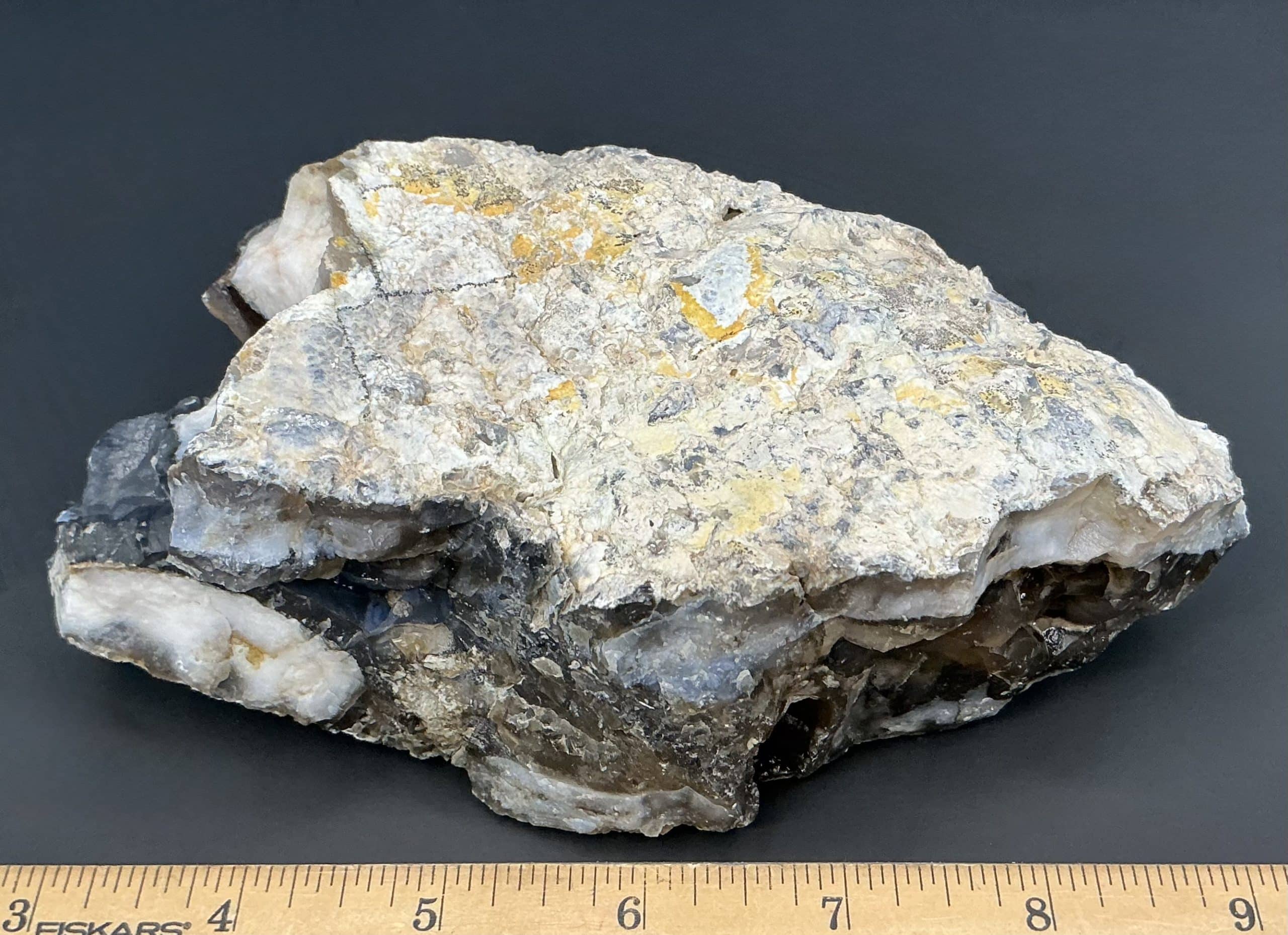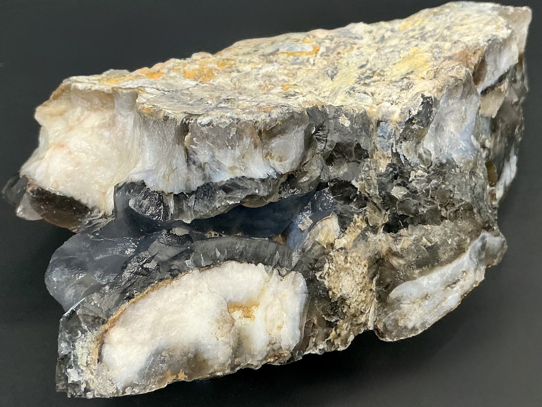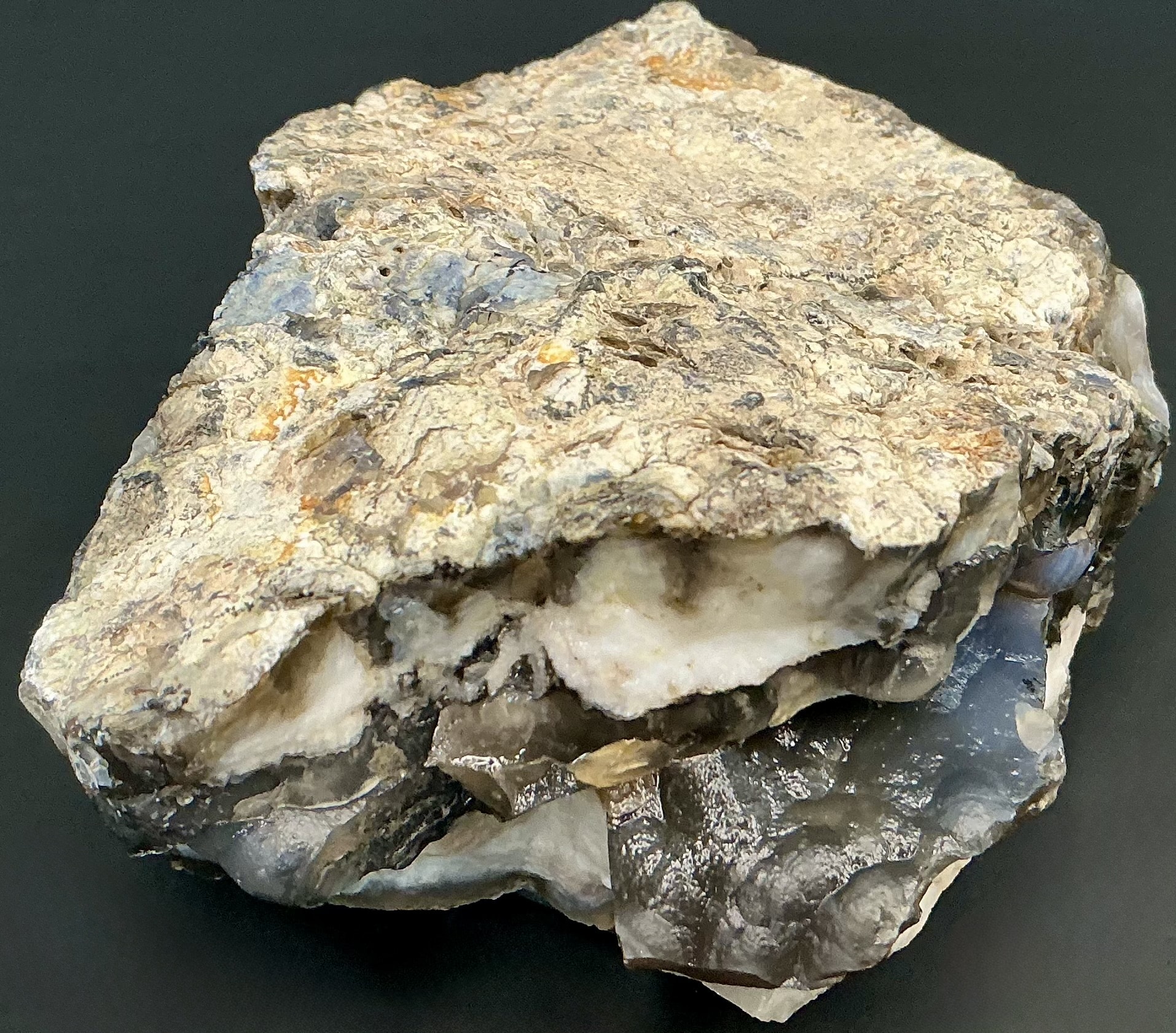 Chalcedony is a cryptocrystalline form of silica, composed of very fine intergrowths of the minerals quartz and moganite. Chalcedony has a waxy luster and may be semitransparent or translucent. It can assume a wide range of colors, but those most commonly seen are white to gray, grayish-blue or a shade of brown ranging from pale to nearly black.