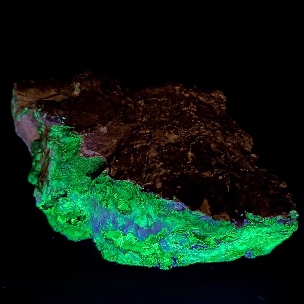 Appearance: Locally sourced, high-quality material. This variety looks especially appealing slabbed and displayed under UV Light, as it fluoresces neon green. UV fluorescent (shot with uvBeast midwave 365nm(nanometer) Black Light UV flashlight).