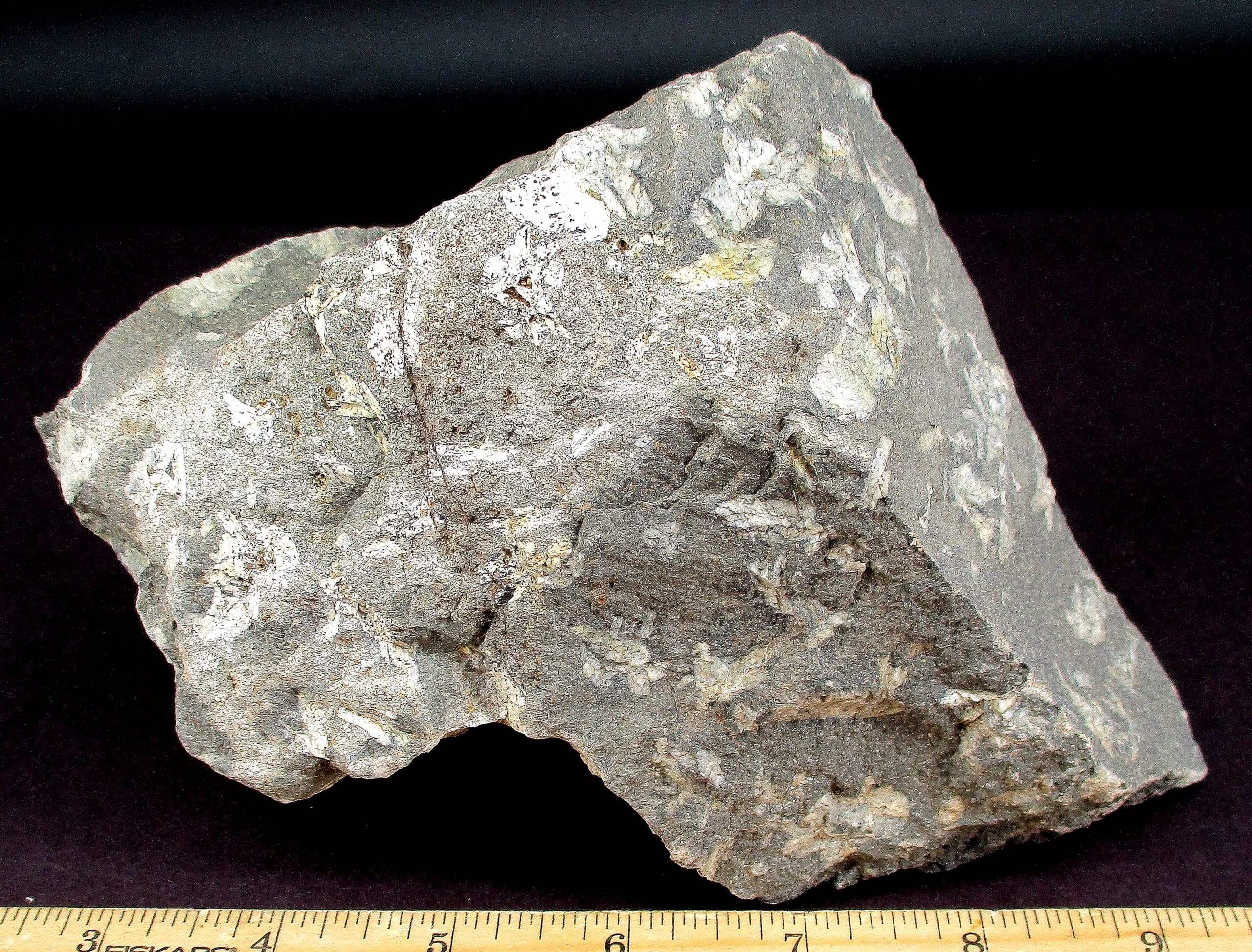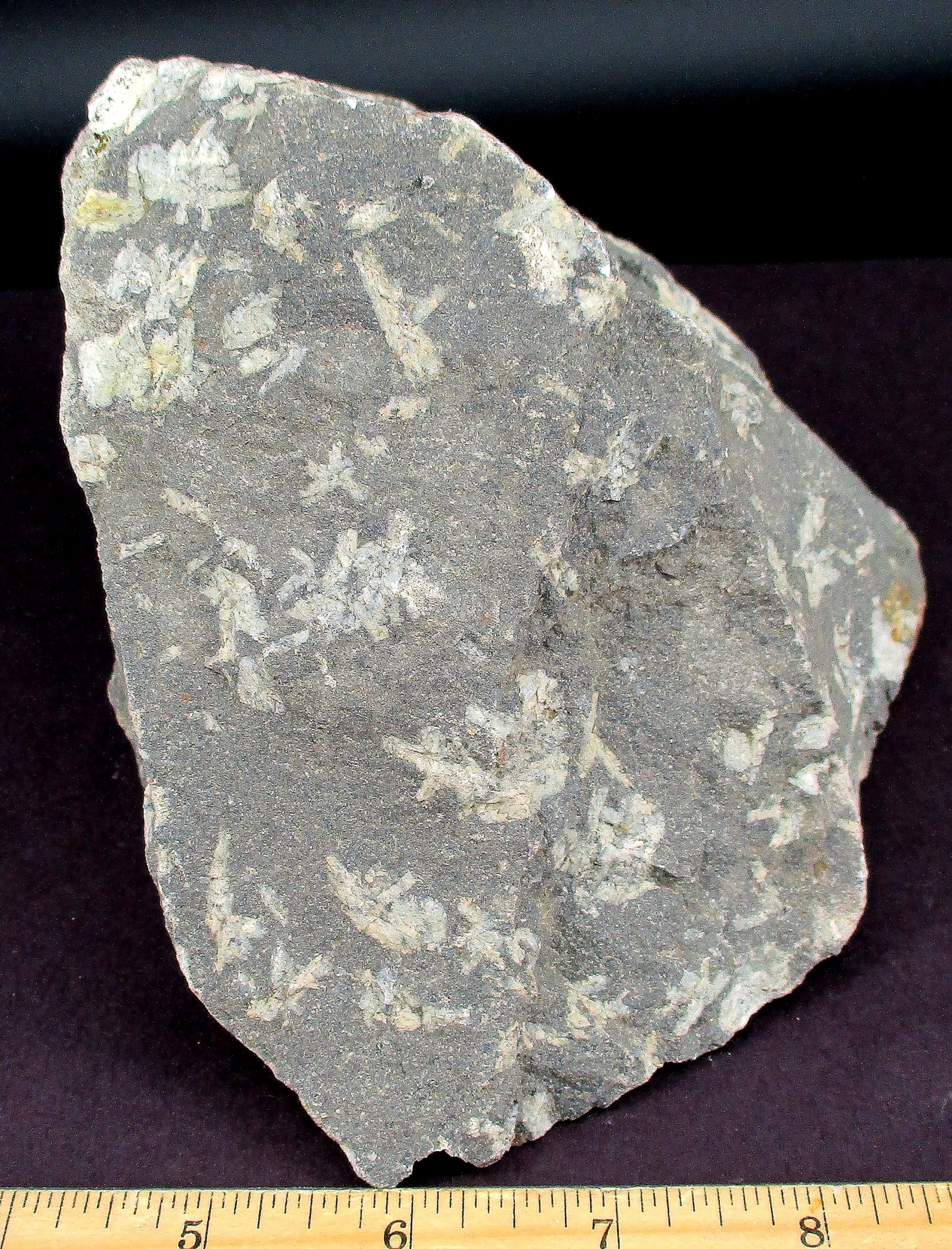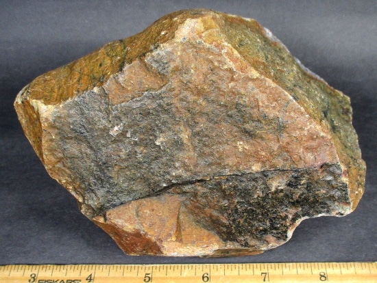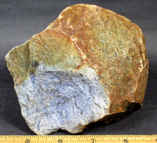 Fuchsite is a green variety of Muscovite Mica. It differs from most other Muscovite by having a variable amount of trivalent Chromium substituting for Aluminum within the mineral. Chromium is the source of Fuchsite’s green color. It sometimes has Ruby Crystals which are completely opaque and unsuitable as gemstones but are well colored and contrast strikingly against the green matrix of the Fuchsite.