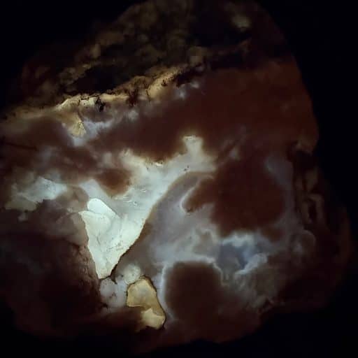 Agates mostly occur as nodules in volcanic rocks or waters containing silica in solution possibly derived from the decomposition of silicates in the lava. The siliceous matter is deposited in regular layers resulting in the banded or striped formation.