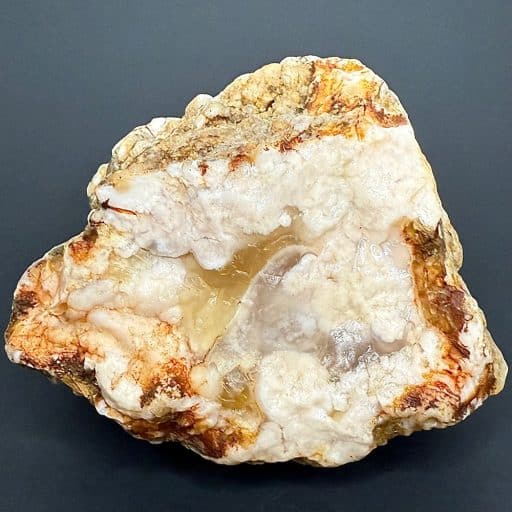 The mesmerizing patterns in Flower Agate are formed through the process of crystallization within volcanic rock cavities over millions of years. These intricate formations are composed of silica, which imbues the stone with its characteristic translucency and color variations.