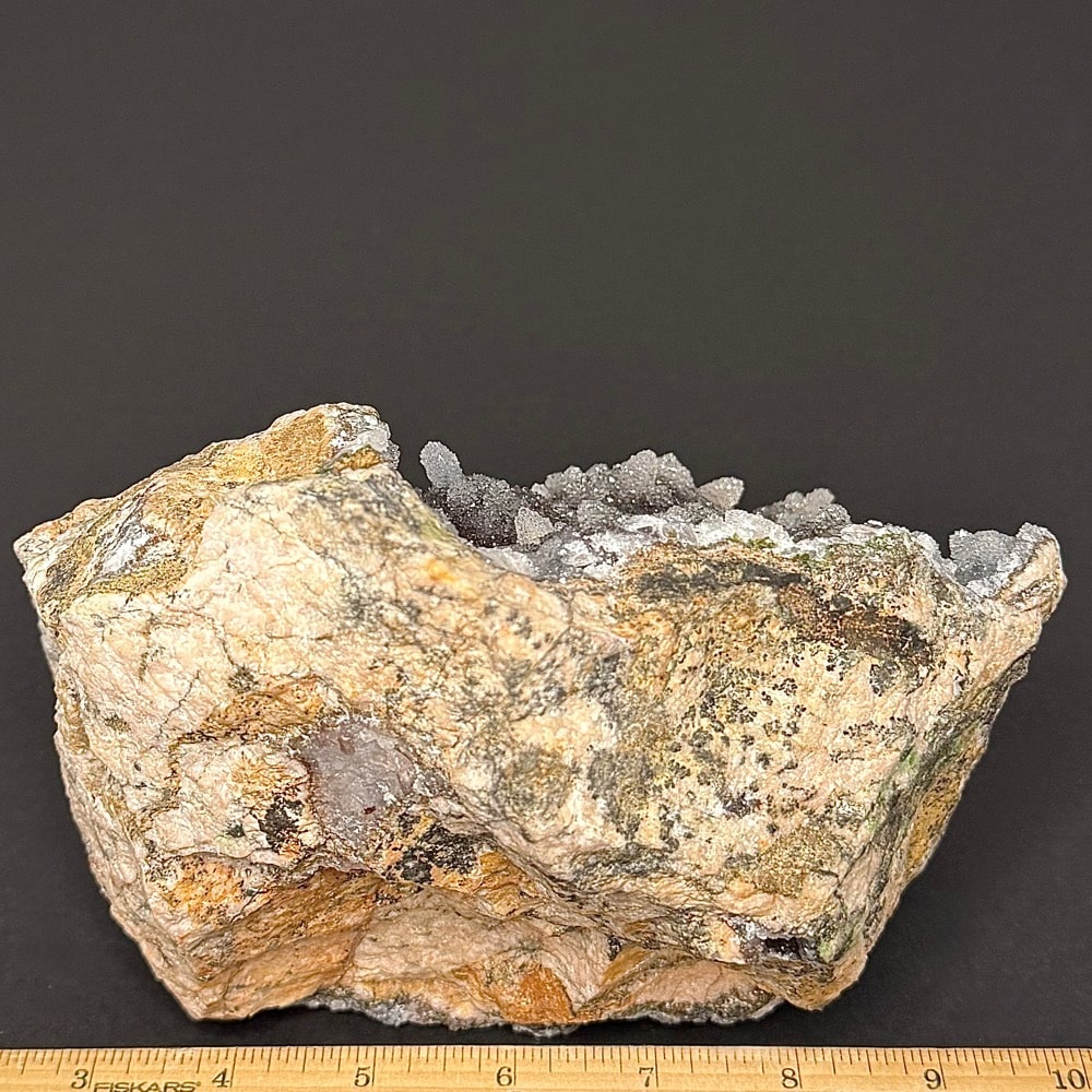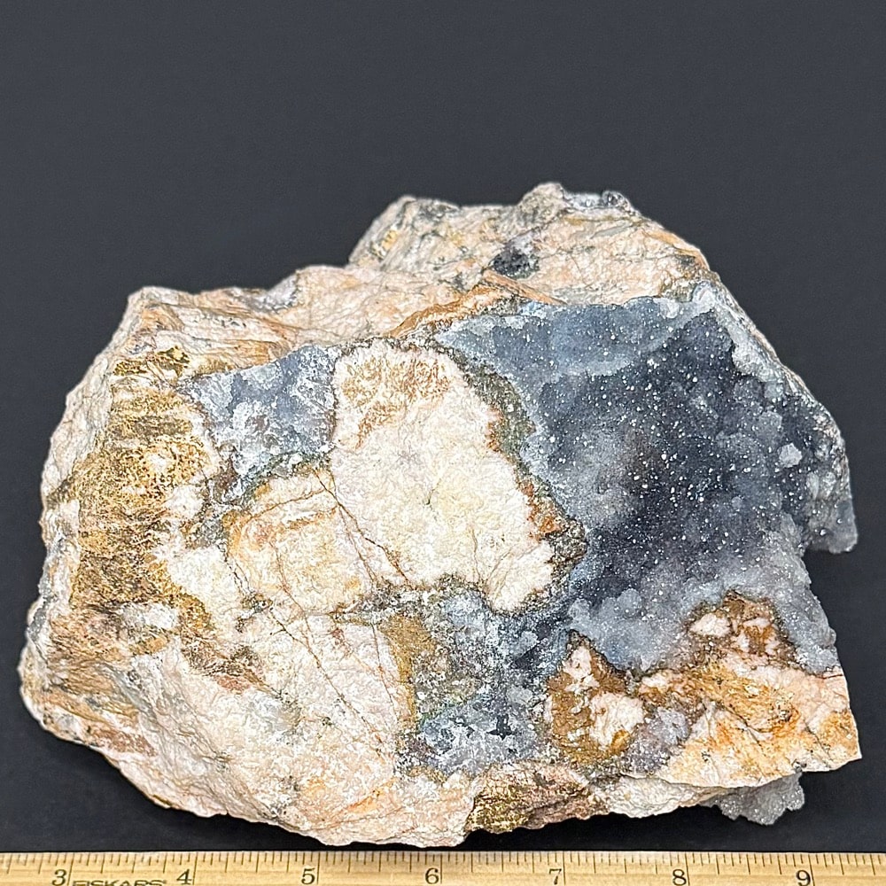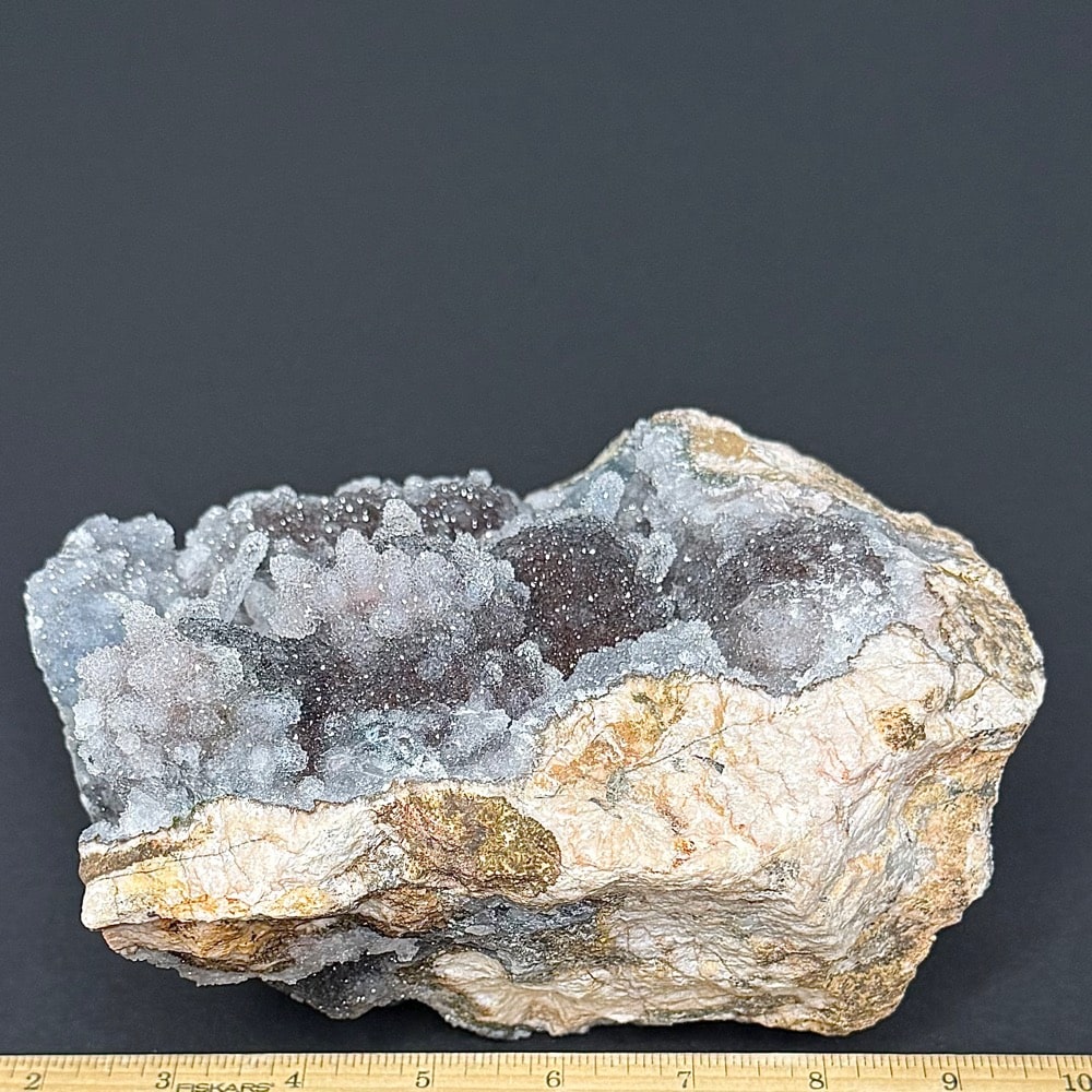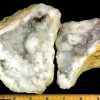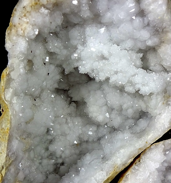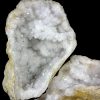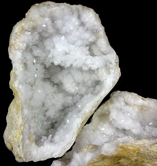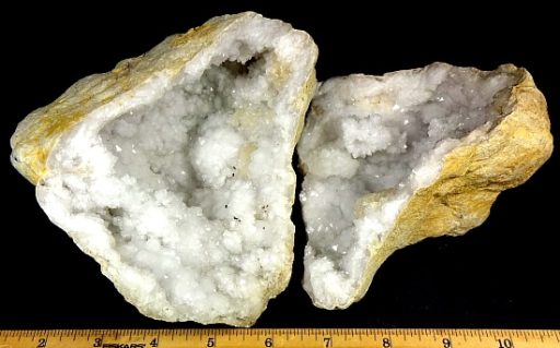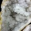 Geodes are geological rock formations which occur in sedimentary and certain volcanic rocks.  They are essentially rock cavities or vugs with internal Crystal formations or concentric banding.  The exterior is generally Limestone while the interior contains Quartz Crystals and/or Chalcedony deposits.  If the Geode is completely filled with Crystal, being solid all the way through, it is then called a nodule.