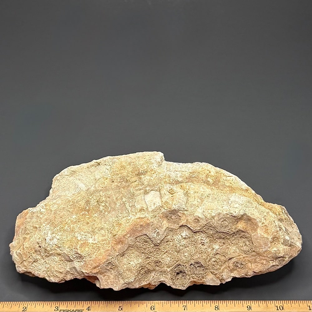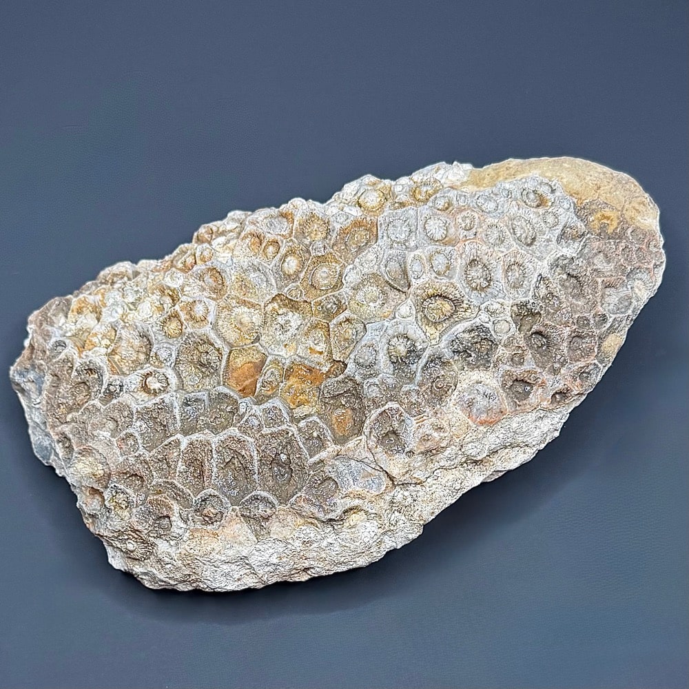 Petoskey stones are composed of fossilized coral, Hexagonaria percarintata, deposited in the Devonian period, some 350 million years ago. They are found in the Gravel Point Formation of the Traverse Group in the northwestern portion of Michigan’s lower peninsula.