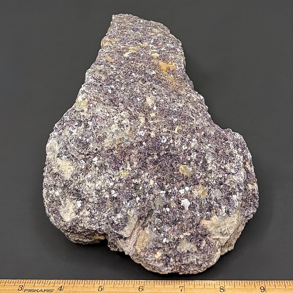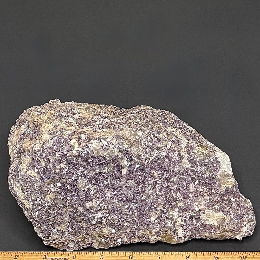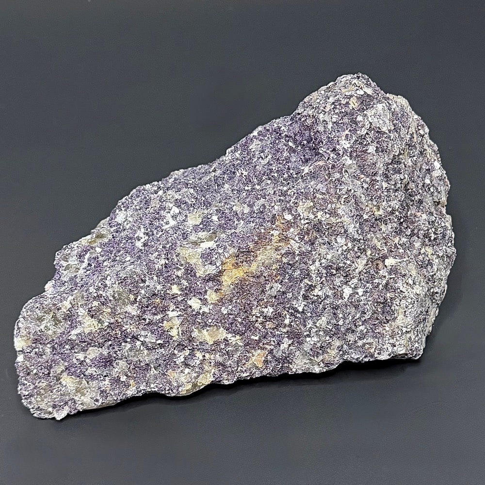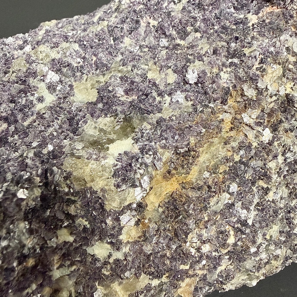 Lepidolite is a lilac-grey or rose-colored member of the Mica group that is a secondary source of Lithium. It is one of the major sources of the rare alkali metals Rubidium and Caesium. Lepidolite occurs in Granite pegmatites, in some high temperature Quartz veins.