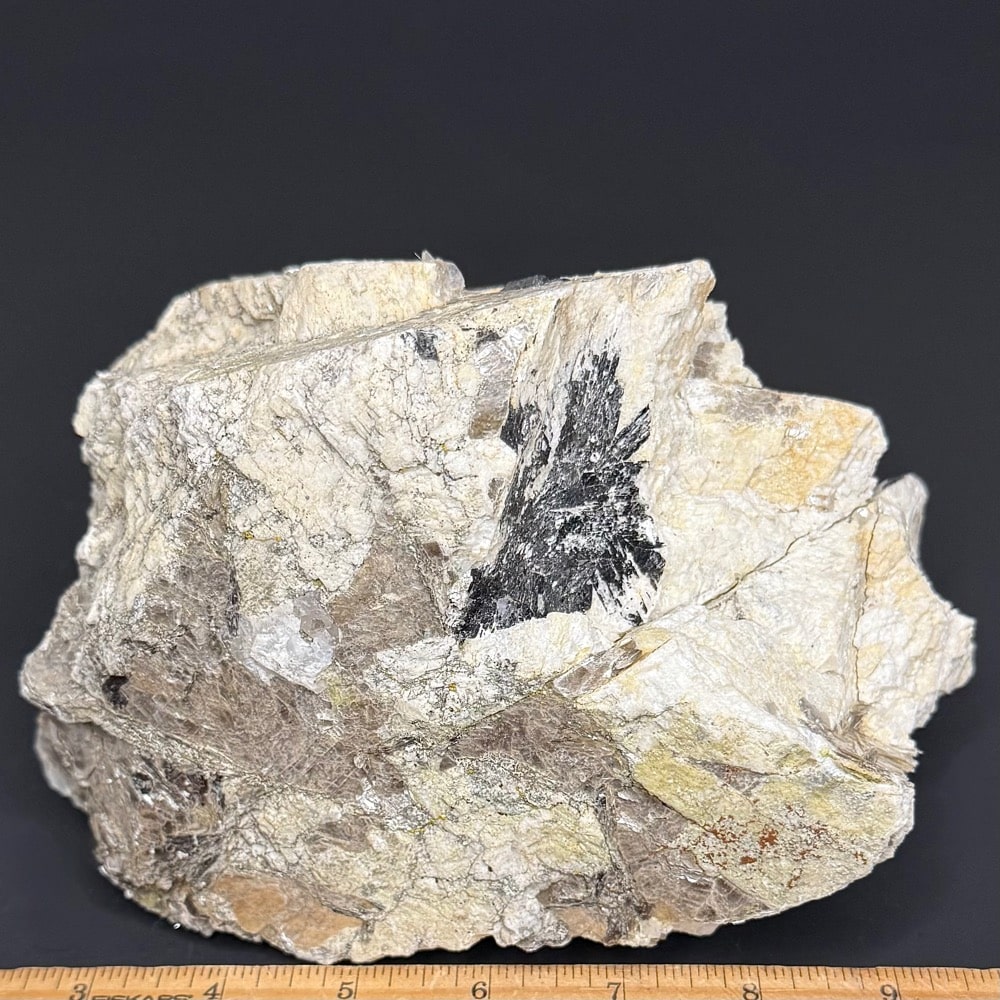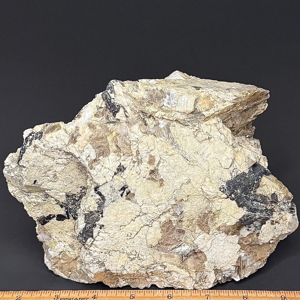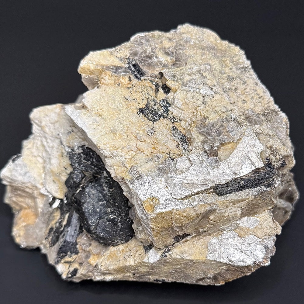 Appearance: Large broad deposits of Mica along with Schorl (black tourmaline) and various additional minerals in granite.