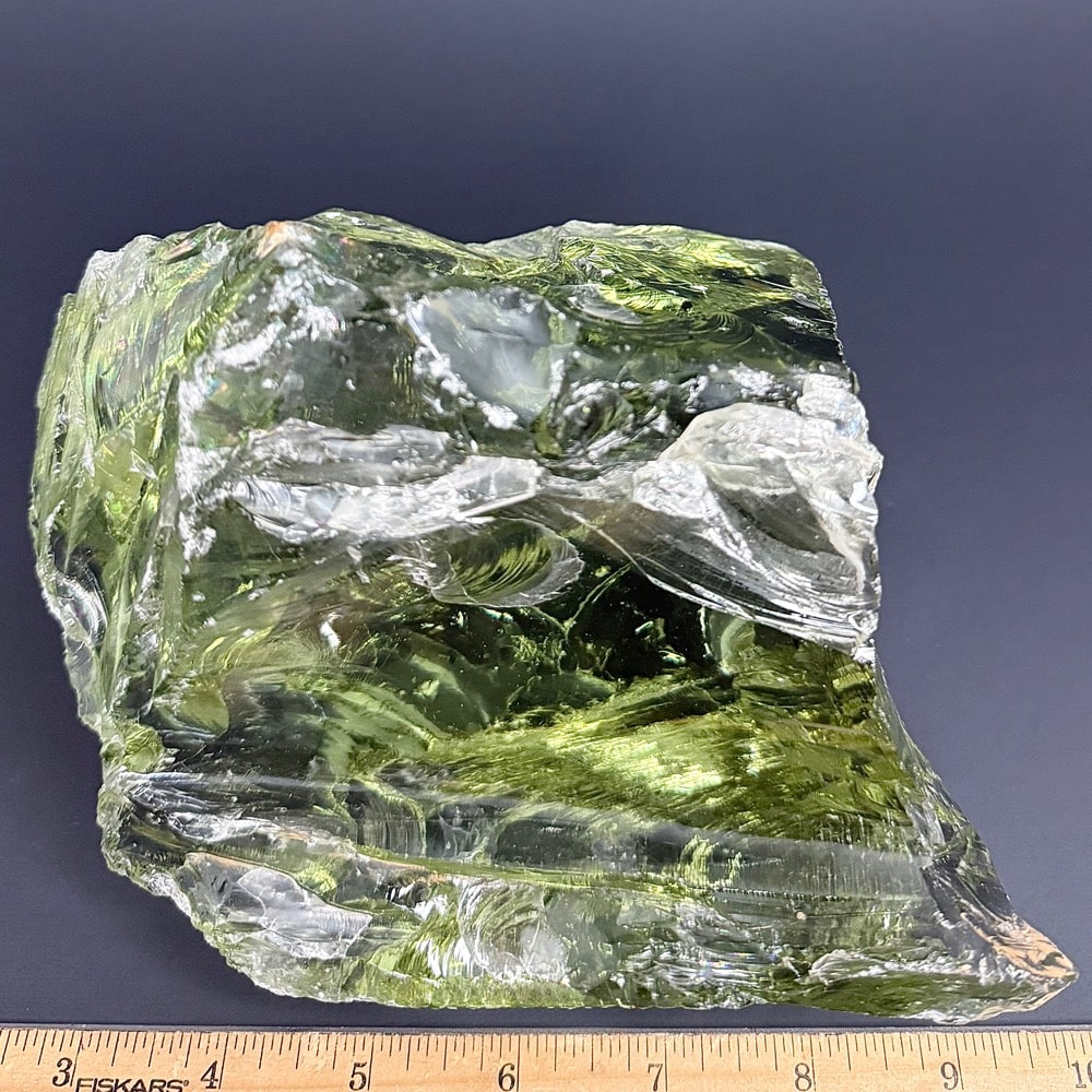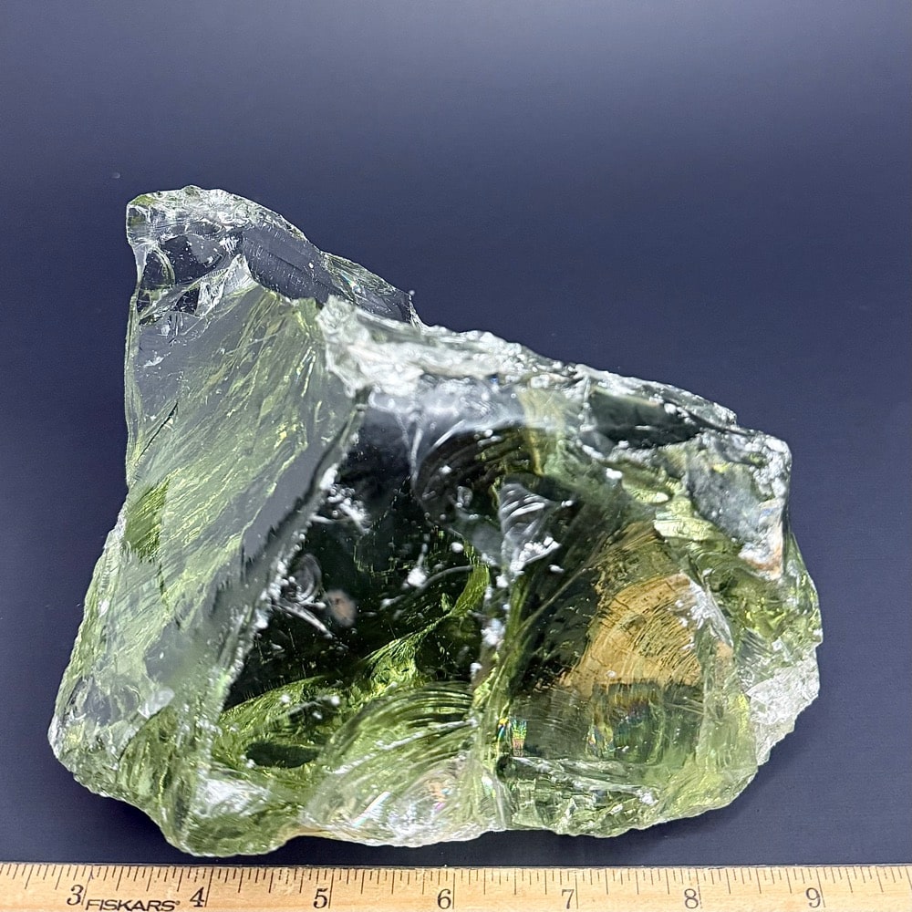 Goldstone is a type of man-made glass with Copper or Copper salts made by a reducing flame. The most common form of Goldstone give the illusion of being a reddish-brown, although in fact the color comes from the Copper crystals and the glass itself is colorless. Other variants have an intensely color matrix usually blue or violet, and more rare, green.