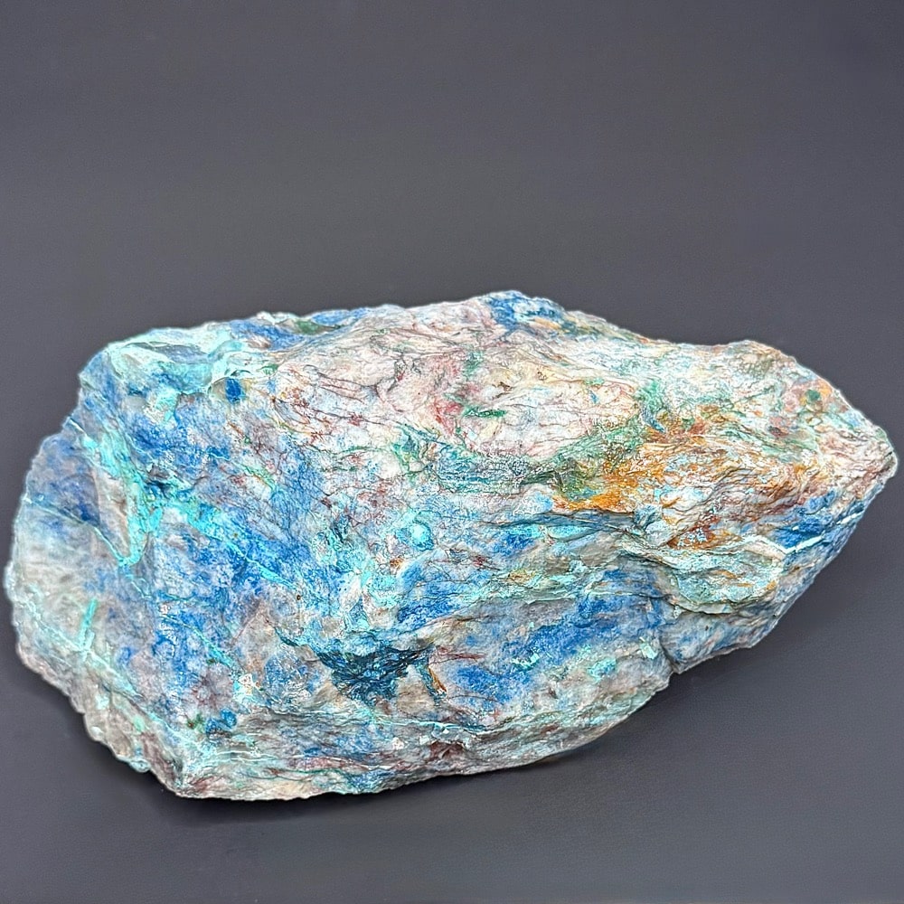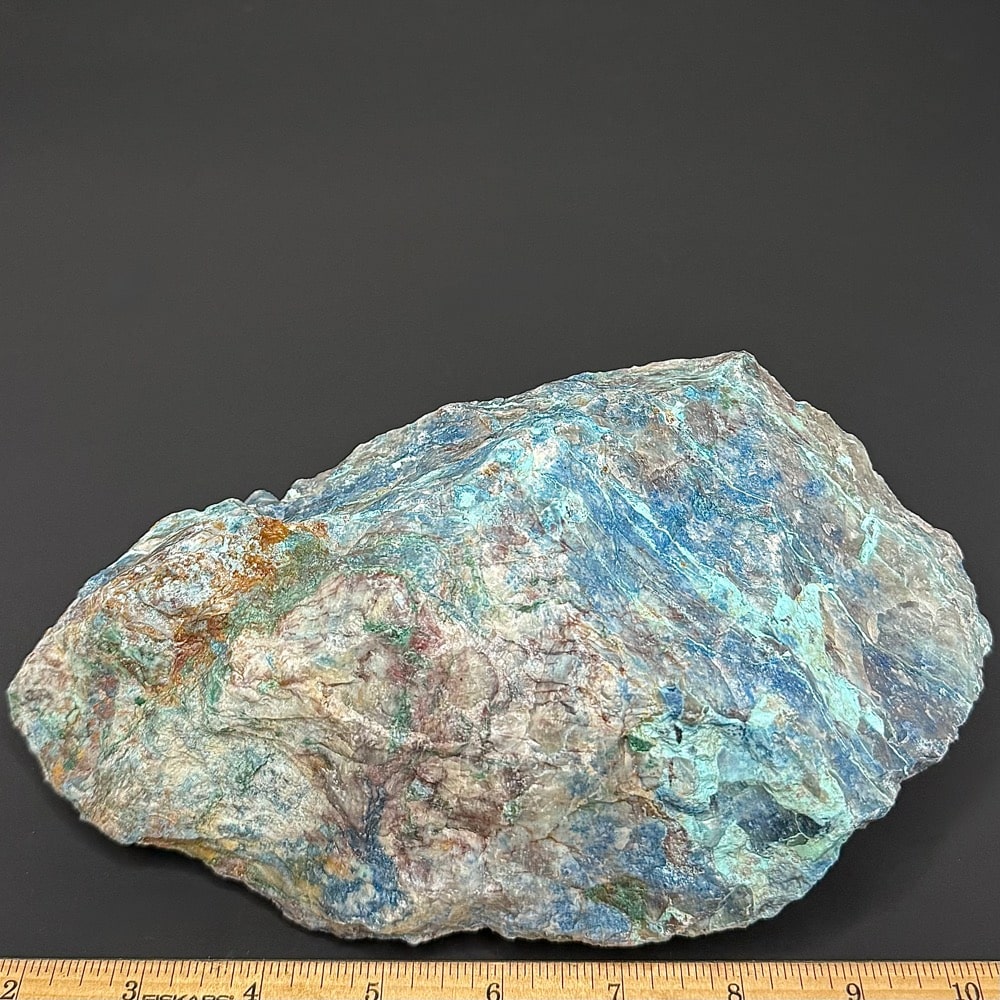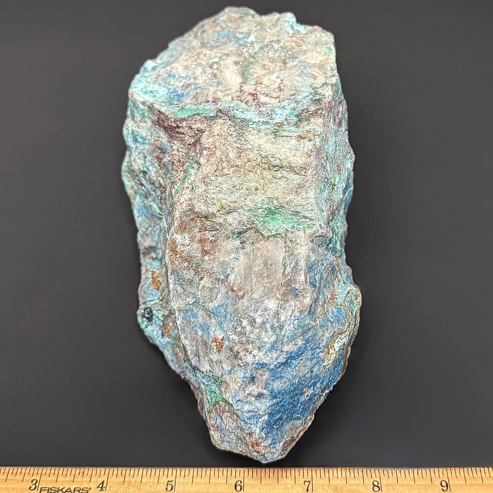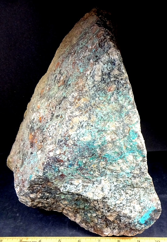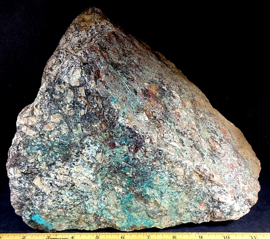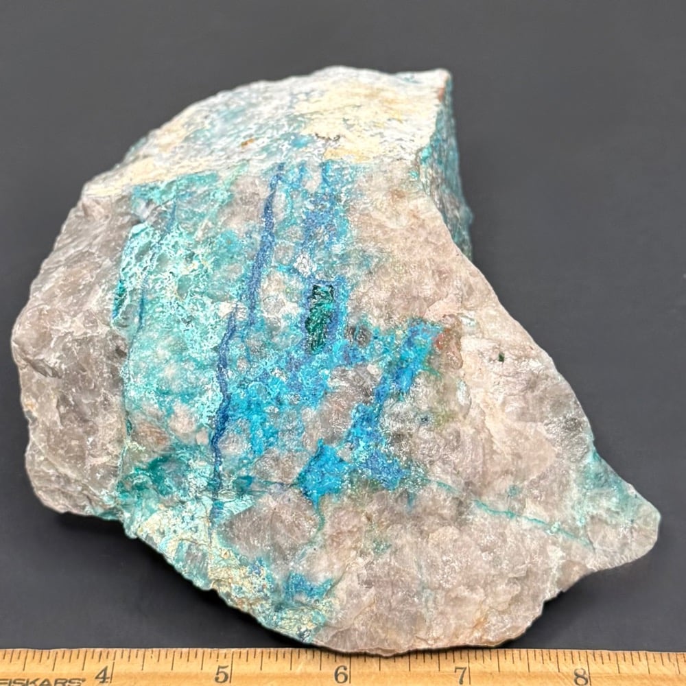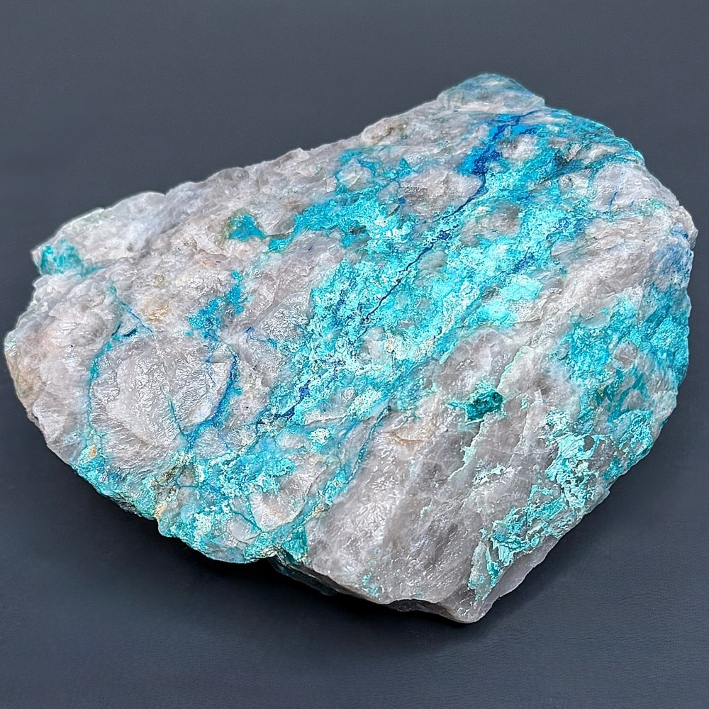 Shattuckite is a relatively rare copper silicate mineral. It was first discovered in 1915 in the copper mines of Bisbee, Arizona, specifically the Shattuck Mine (hence the name). It is a secondary mineral that forms from the alteration of other secondary minerals. At the Shattuck Mine, it forms pseudomorphs after malachite. A pseudomorph is an atom-by-atom replacement of a crystal structure by another crystal structure, but with little alteration of the outward shape of the original crystal. It is sometimes used as a gemstone.
