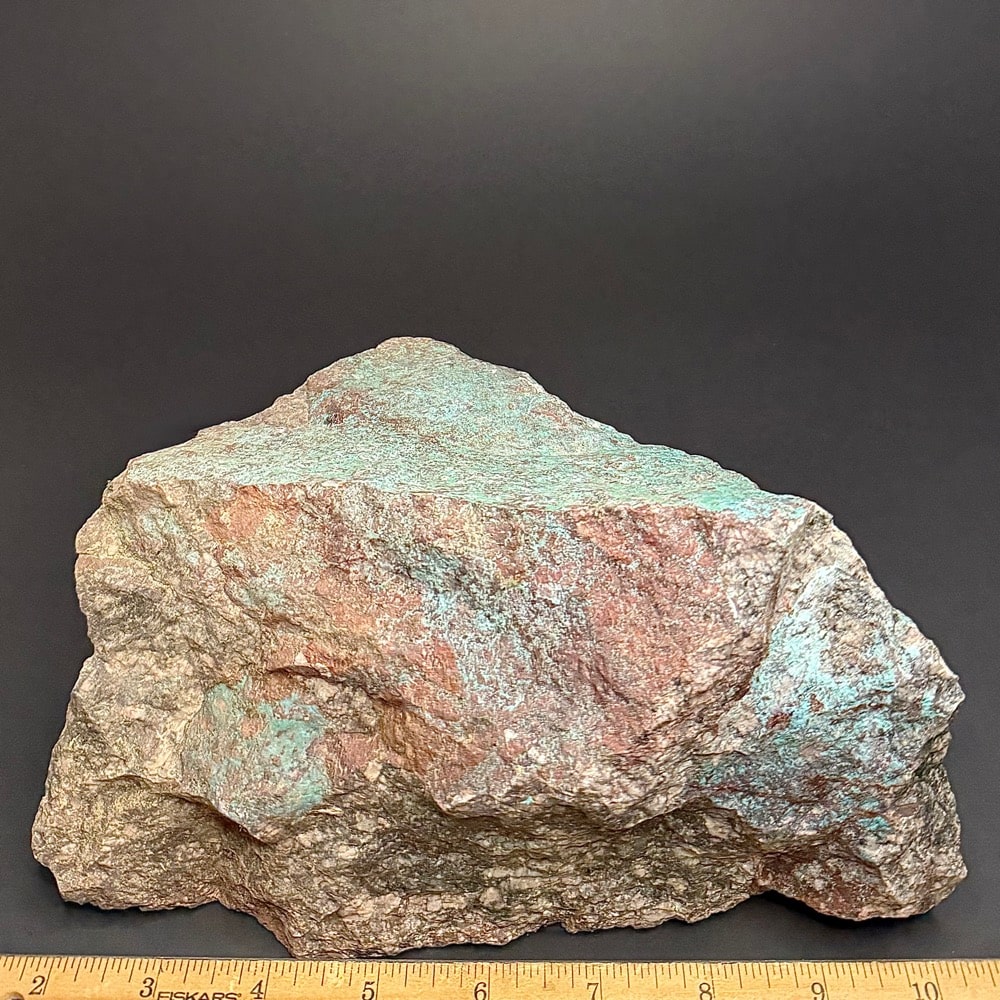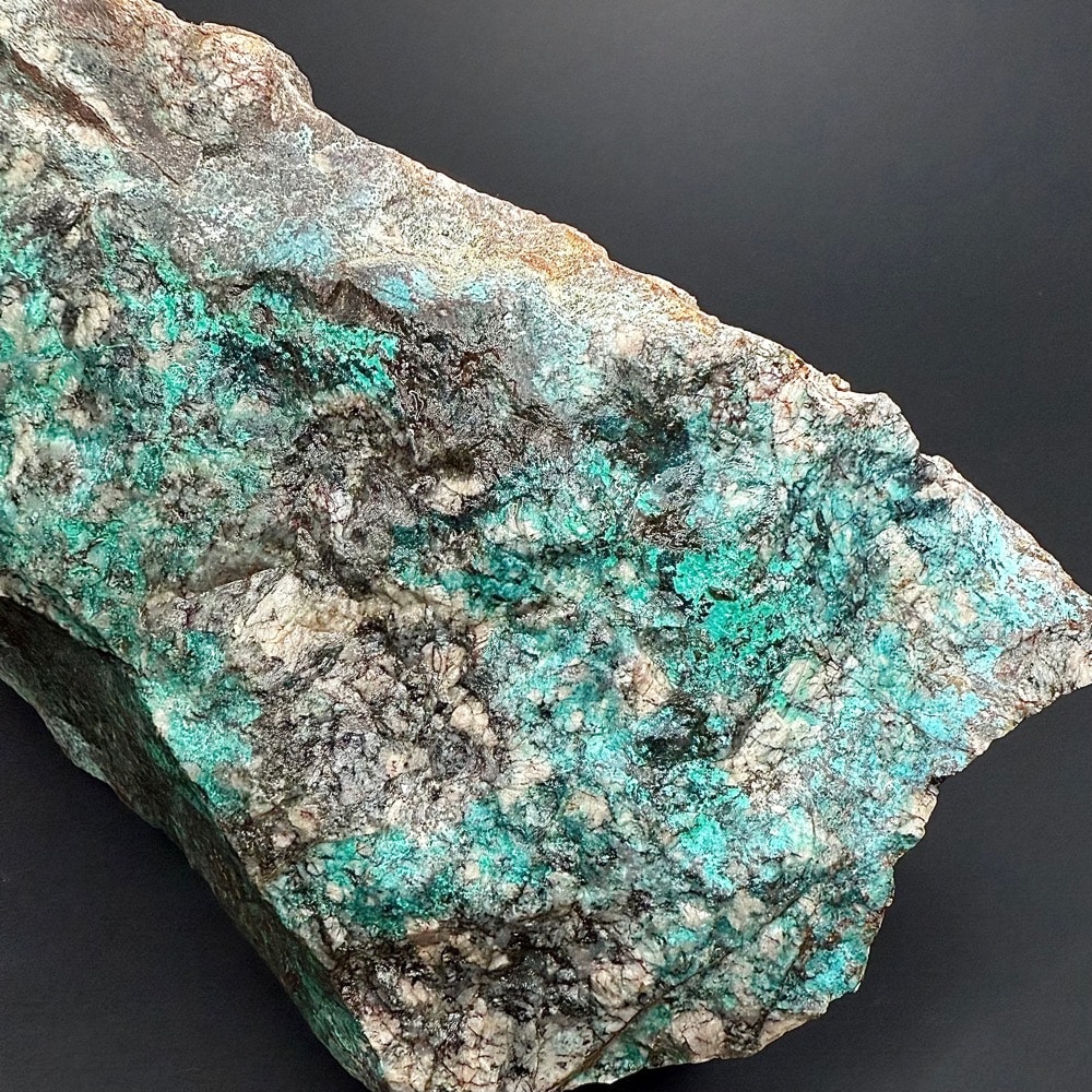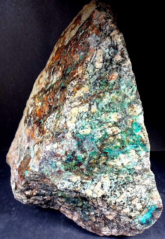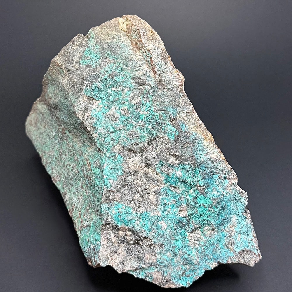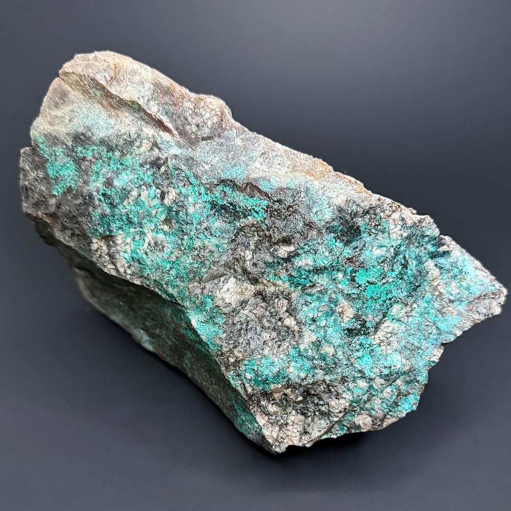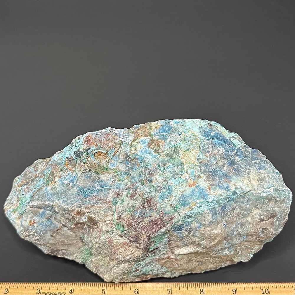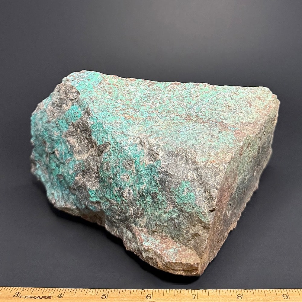Shattuckite is a relatively rare copper silicate mineral. It was first discovered in 1915 in the copper mines of Bisbee, Arizona, specifically the Shattuck Mine (hence the name). It is a secondary mineral that forms from the alteration of other secondary minerals. At the Shattuck Mine, it forms pseudomorphs after malachite. A pseudomorph is an atom-by-atom replacement of a crystal structure by another crystal structure, but with little alteration of the outward shape of the original crystal. It is sometimes used as a gemstone.